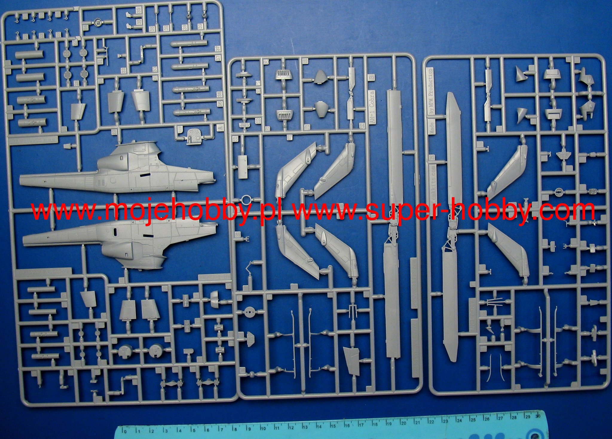 The AH-1 Cobra helicopter (Bell 209) is an attack helicopter in the classic layout, using many components of its "big brother" UH-1 Huey. The first flight of the AH-1 prototype took place on September 7, 1965 and the helicopter entered mass production in the same year. During the Vietnam War, 1,126 machines of the G model were produced, of which 279 were lost in combat. Due to the very high reliability of the structure, small side profile and good performance, the helicopter remains in service to this day in the US Marine Corps. The AH-1 allowed the US Army to fully implement the theoretical assumption of airmobile infantry ("air cavalry") through the fire support of landing infantry units. Today, the AH-1 Cobra is primarily used against an armored celon. From 1965, several versions of this successful helicopter were created, including: AH-1G (basic version), AH-1J (two-engine version), AH-1Q (version armed with TOW missiles). Technical data: Top speed: 333 km / h; maximum range (depending on version): 507-574km, armament: fixed-1 20mm M197 three-barrel cannon, slung rockets, guided missiles, unguided missiles and cannon pods.