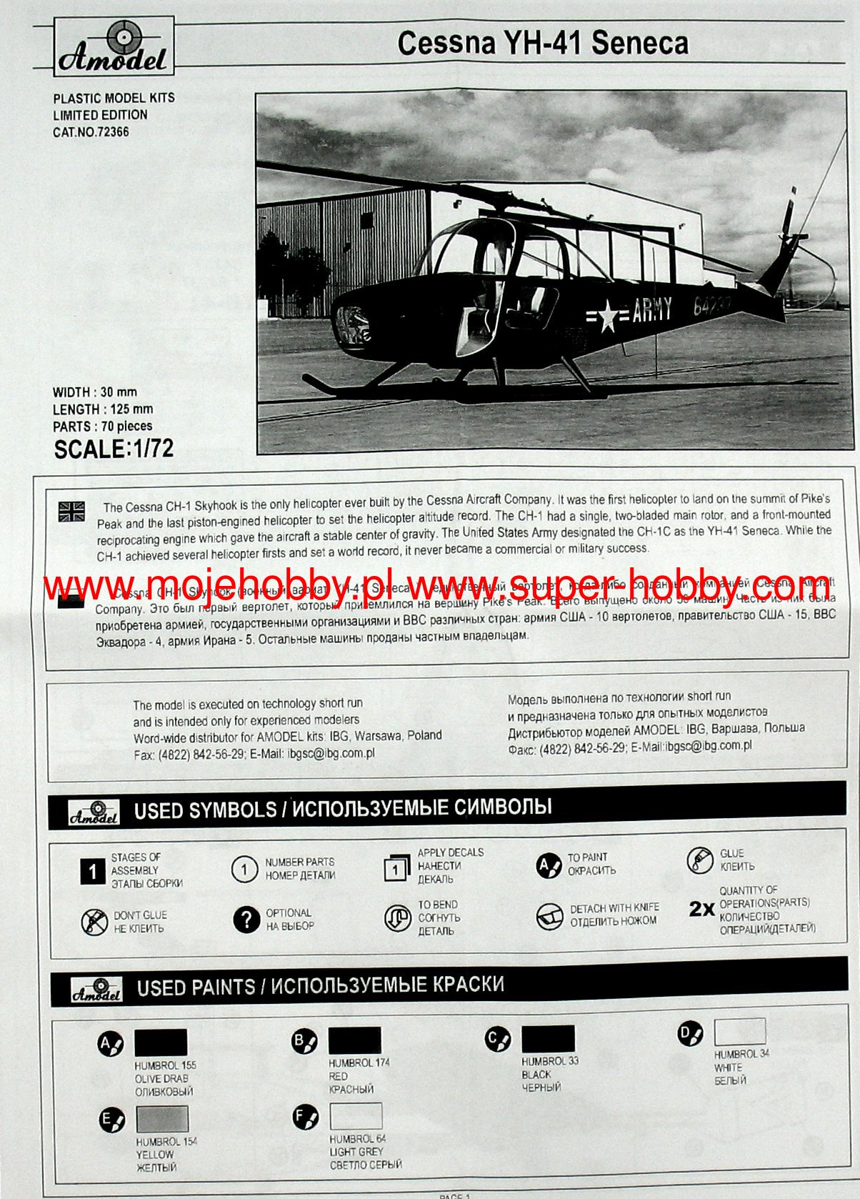 The Cessna YH-41 (another designation: CH-1) is an American light helicopter from the post-war period. The flight of the prototype took place in 1953, and serial production was carried out in the years 1956-1962. About 50 machines of this type were built in its course. The total length of the helicopter - in the CH-1C version - was 12.95 meters, with a height of 2.51 meters. The drive was provided by a single Continental FSO-526-A engine with 270 HP. The CH-1 / YH-41 helicopter was so far the only aircraft of its kind built by the Cessna Aircraft Company. Its design was largely based on the Seibel S-4, which was flew in 1949. It is worth adding that the Seibel label was taken over by Cessna in 1952. Several variants of this helicopter were created in the course of production. including: CH-1A (version for four passengers), CH-1B (pre-serial series for the US Armed Forces), YH-41 (military designation for the CH-1B helicopter) or CH-4 (version with the Allison mod .250 dedicated to the US Army). CH-1 helicopters were used outside the United States in Iran and Ecuador.