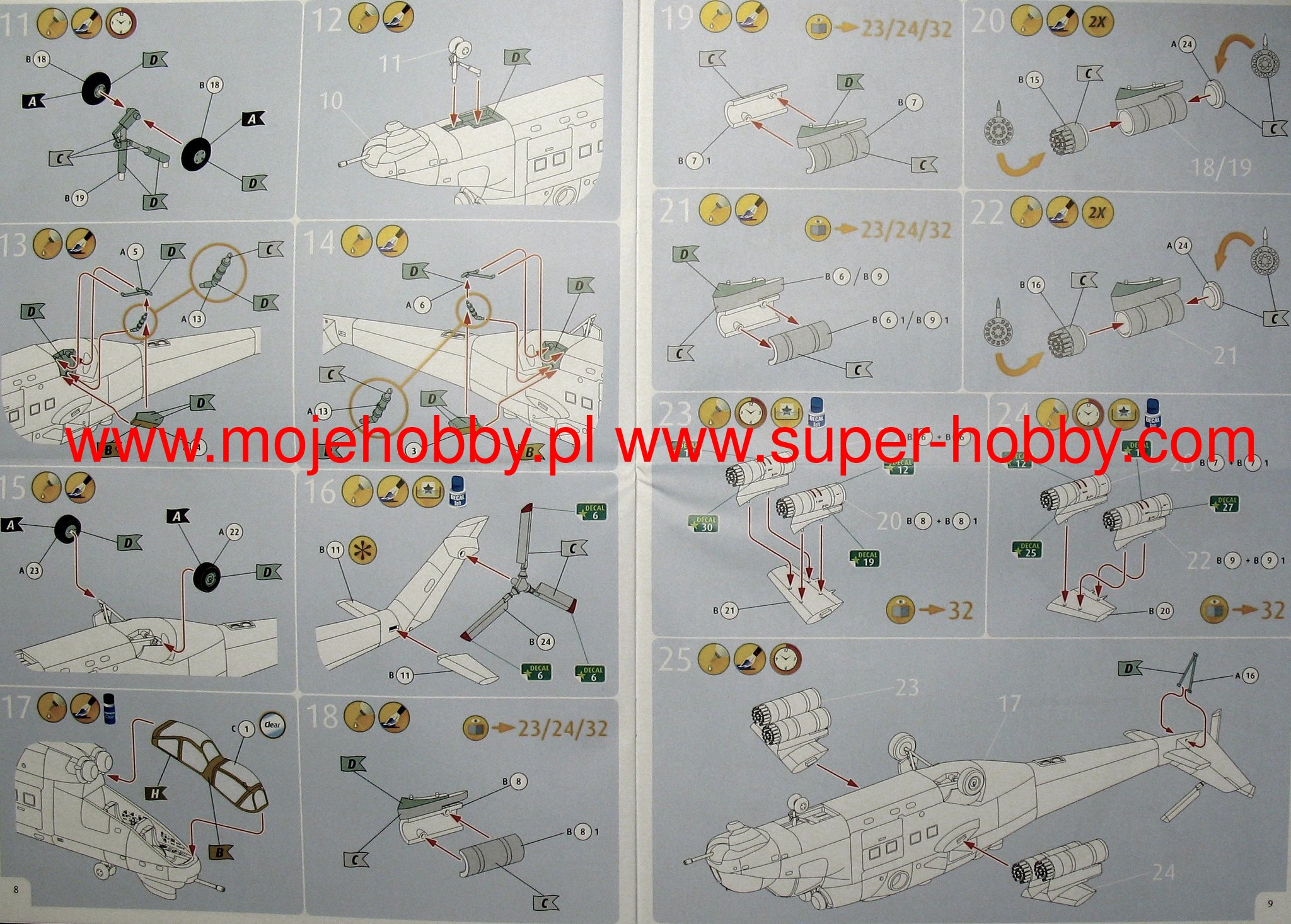 Mil Mi-24 (kod NATO: Hind) był ciężkim śmigłowcem bojowym produkcji radzieckiej o konstrukcji w pełni metalowej półskorupowej, z podwoziem chowanym, w układzie klasycznym z wirnikiem nośnym i śmigłem ogonowym na belce . Napęd zapewniał dwa silniki turbowałowe TW-3-177MT różnych modeli o mocy 2200 KM każdy. Oblot pierwszego prototypu miał miejsce we wrześniu 1969 roku, a produkcja seryjna trwała od 1970 do 1983 roku. Głównym impulsem do opracowania Mi-24 były nowe założenia taktyczno operacyjne Armii Radzieckiej, która w działaniach ofensywnych zaczęła pod koniec lat 60. XX wieku kłaść ogromny nacisk na wykorzystanie szturmowych śmigłowców bojowych. Pierwotnie nieźle w tej roli sprawdzał się Mi-8, jednak bazując na jego podzespołach postanowiono na stworzenie śmigłowca potężnie uzbrojonego, szybszego oraz wciąż mogącego przewieź do 8-10 żołnierzy desantu. Tak narodził się Mi-24 maszyna na swój sposób rewolucyjna, unikalna w swej koncepcji i w chwili wprowadzenia do służby (początek lat 70. XX wieku) deklasująca wszelkie konstrukcje zachodnie. Stworzono bardzo wiele modernizacji wersji podstawowej (Mi-24). Pierwszą chronologicznie była wersja Mi-24A,w której polepszono ergonomię maszyny oraz dodano mocniejsze silniki. Później opracowano model Mi-24D, który cechował się innym kształtem kabiny już w układzie tandemowym oraz innym ułożeniem śmigła ogonowego. Powstała też wersja eksportowa o nazwie Mi-35. Bardzo udany Mi-24 był szeroko eksportowany do krajów Układu Warszawskiego, ale też np. Libii czy Etiopii. Śmigłowce Mi-24 wzięły udział w licznych konfliktach zbrojnych, m.in.: w toku interwencji wietnamskiej w Kambodży, ale przede wszystkim w wojnie w Afganistanie (1979-1989), gdzie Mi-24 stały się „koniem roboczym” wojsk radzieckich, cechując się przy tym wysoką skutecznością. Mudżahedini śmigłowcom Mi-24 nadali przydomek „diabelski rydwan”. Co oprócz modelu będę potrzebować do jego sklejenia?
