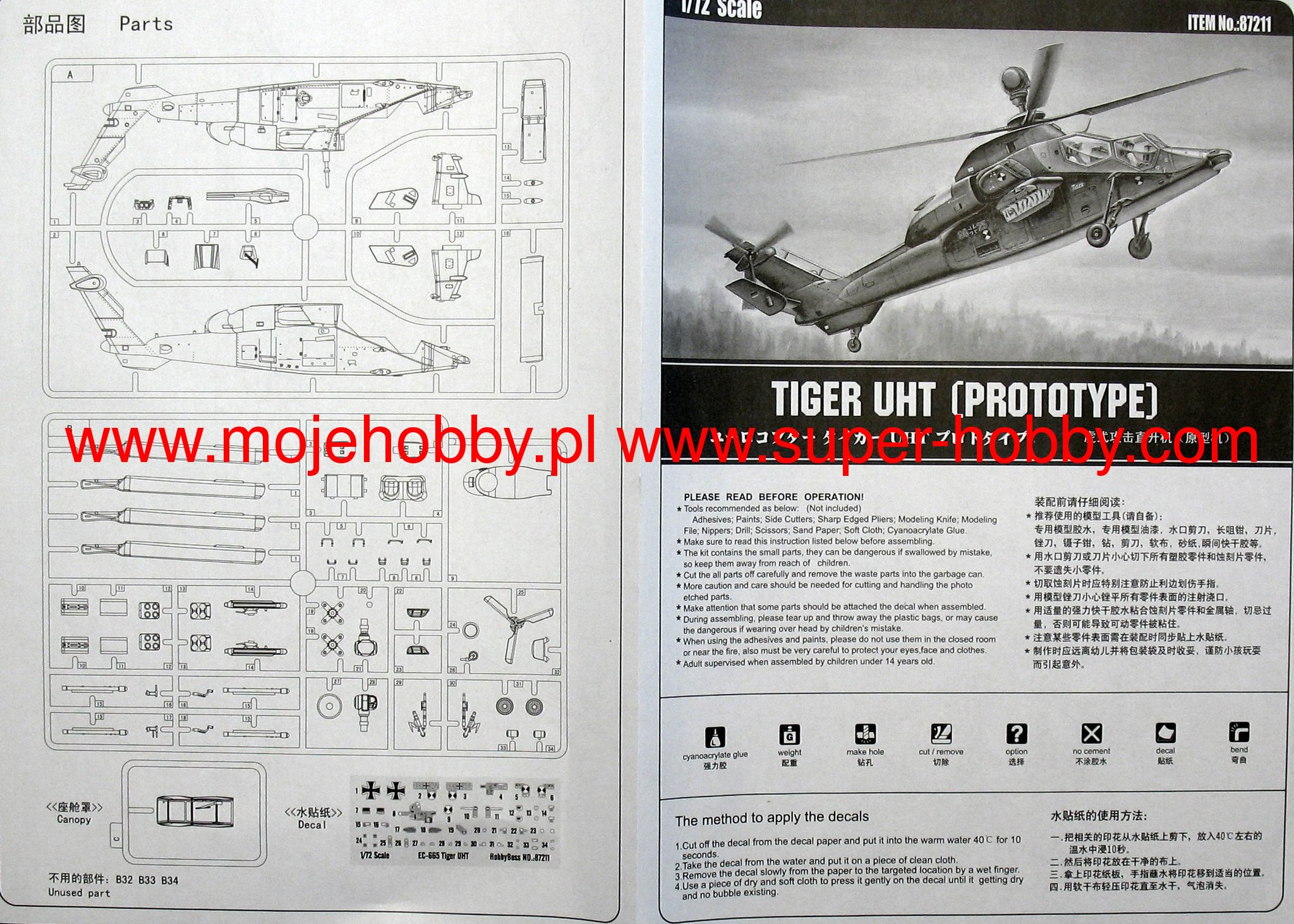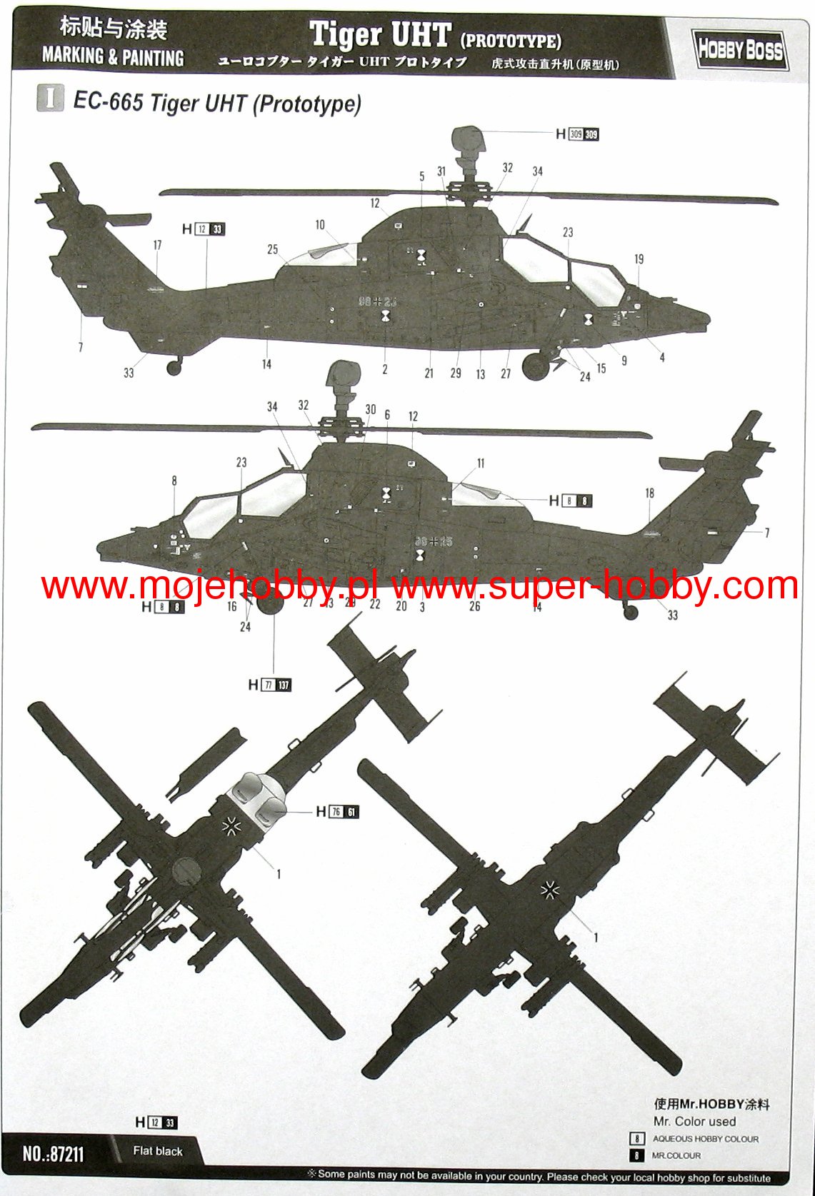 Eurocopter Tiger is a twin-engine attack helicopter of German, Spanish and Italian production, with a metal structure in a classic arrangement with a main rotor and a tail rotor on the beam. In the basic version, the drive is provided by two Rolls-Royce / MTU 390 engines with 1183 HP each. The flight of the first prototype took place in 1991, and serial production, which only started in 2002, is still ongoing. At present (2017), it is estimated that approx. 100 copies of this helicopter have been produced. The Eurocopter Tiger was created in response to a competition announced in 1984 by the French and German Ministry of Defense for a new attack helicopter for the armies of both countries. In order to reduce costs, a consortium of Aerospatiale and MBB was established. In the course of serial production, four specialized development versions were created, produced in - so far - in relatively short batches. One of them is the UHT version used by the German army as an anti-tank helicopter. Interestingly - this version does not have a plot. Another is the version of the HAP used by the armies of France and Spain as a close support and escort helicopter. In general, all versions of the Eurocopter Tiger are very similar to each other and differ mainly in their weapons and avionics. Eurocopter Tiger have been used in combat in Afghanistan by France, Germany and Spain since 2009.