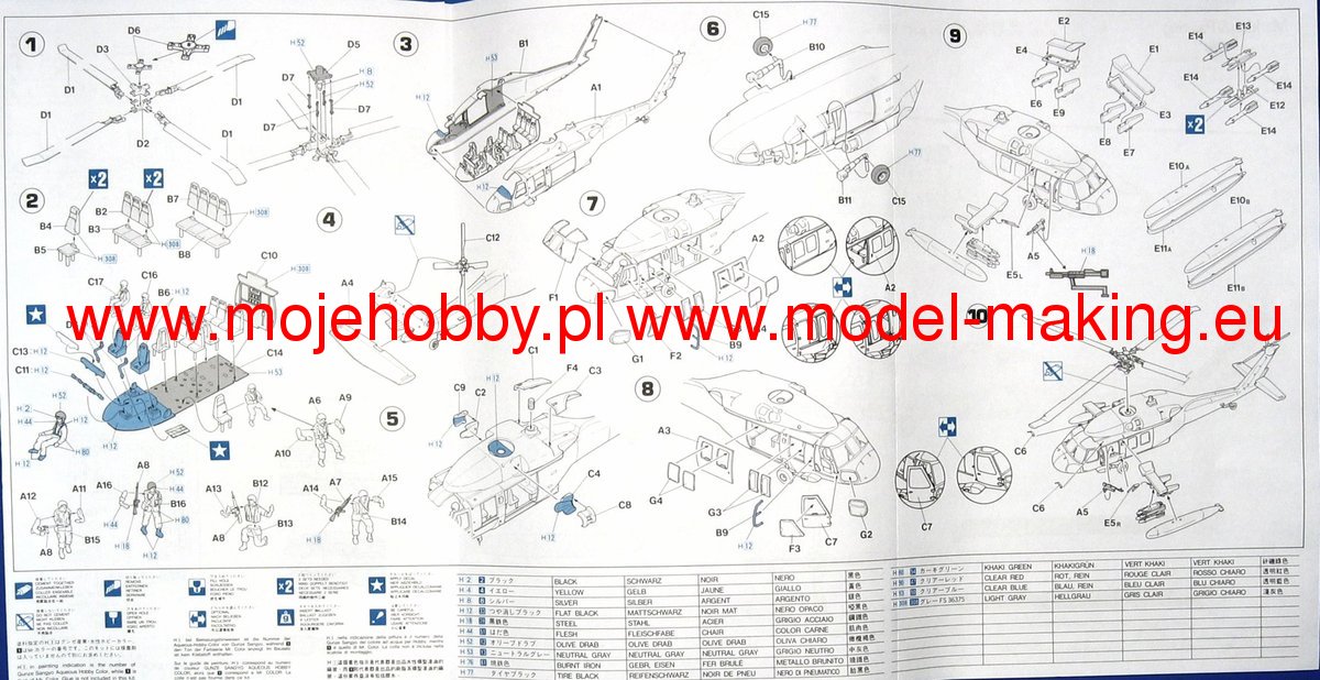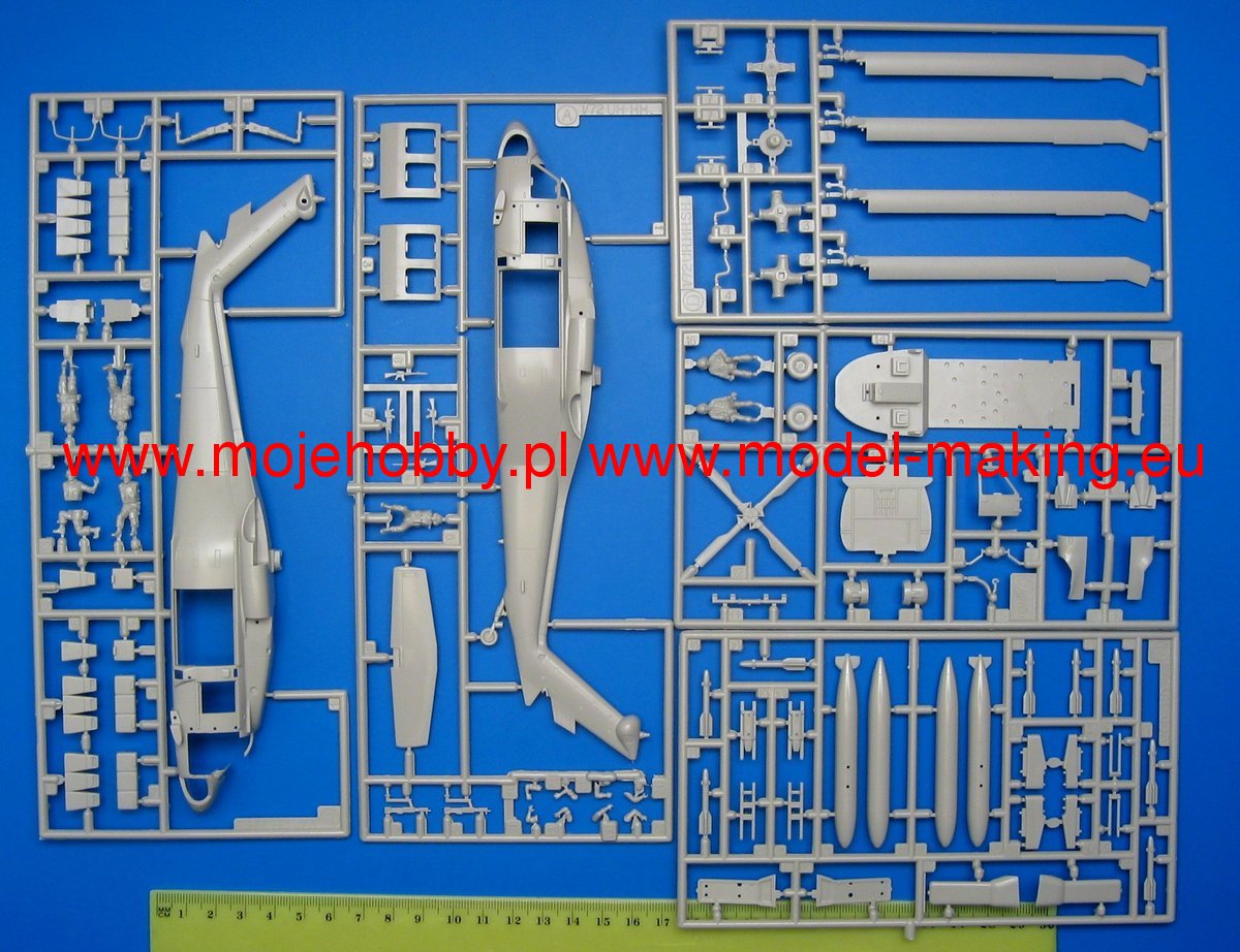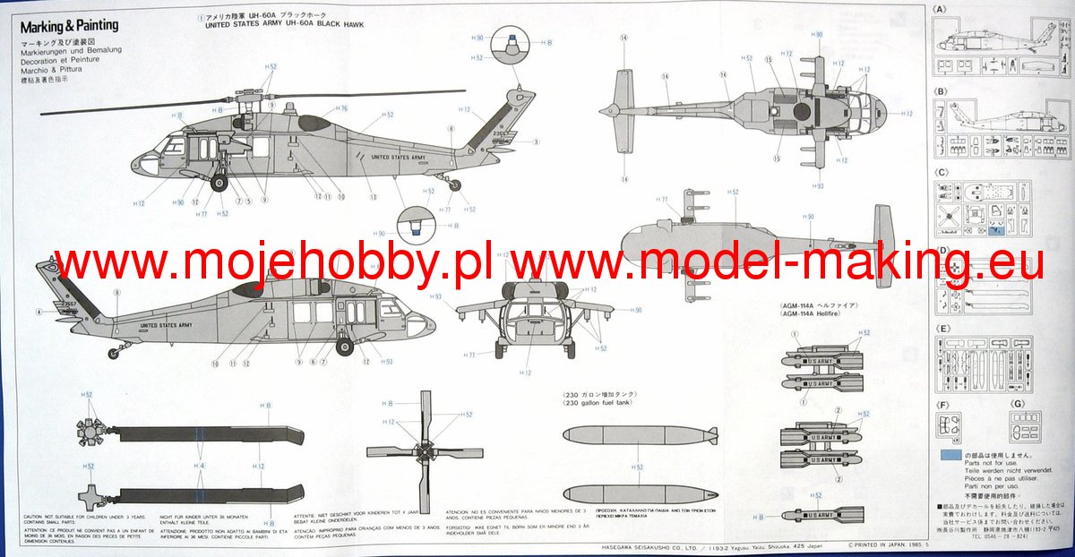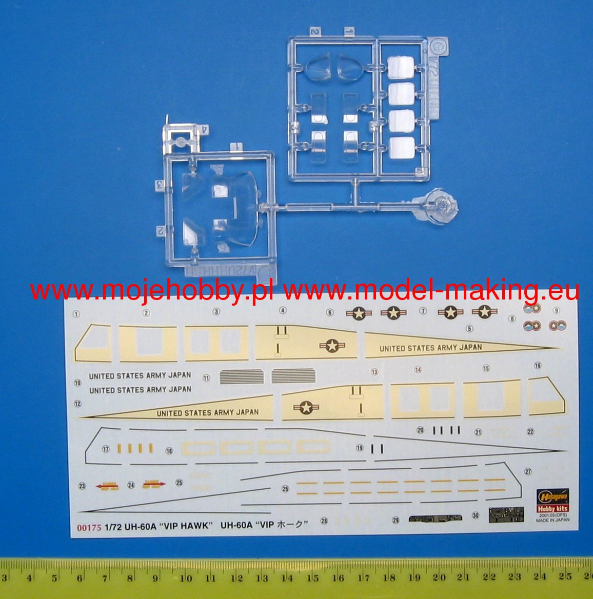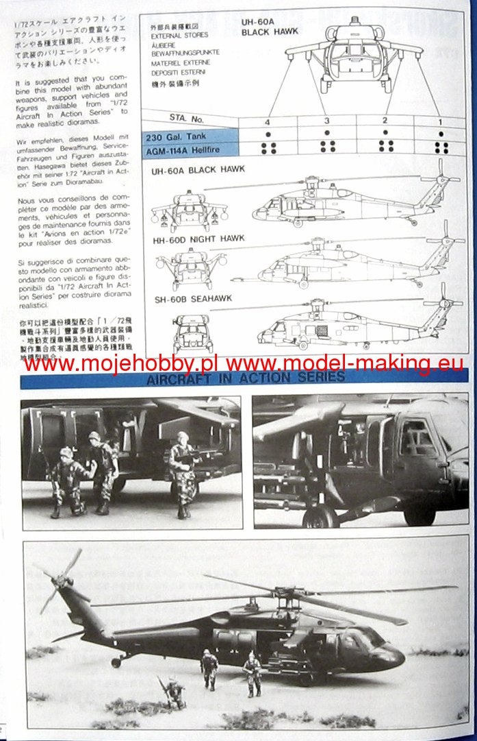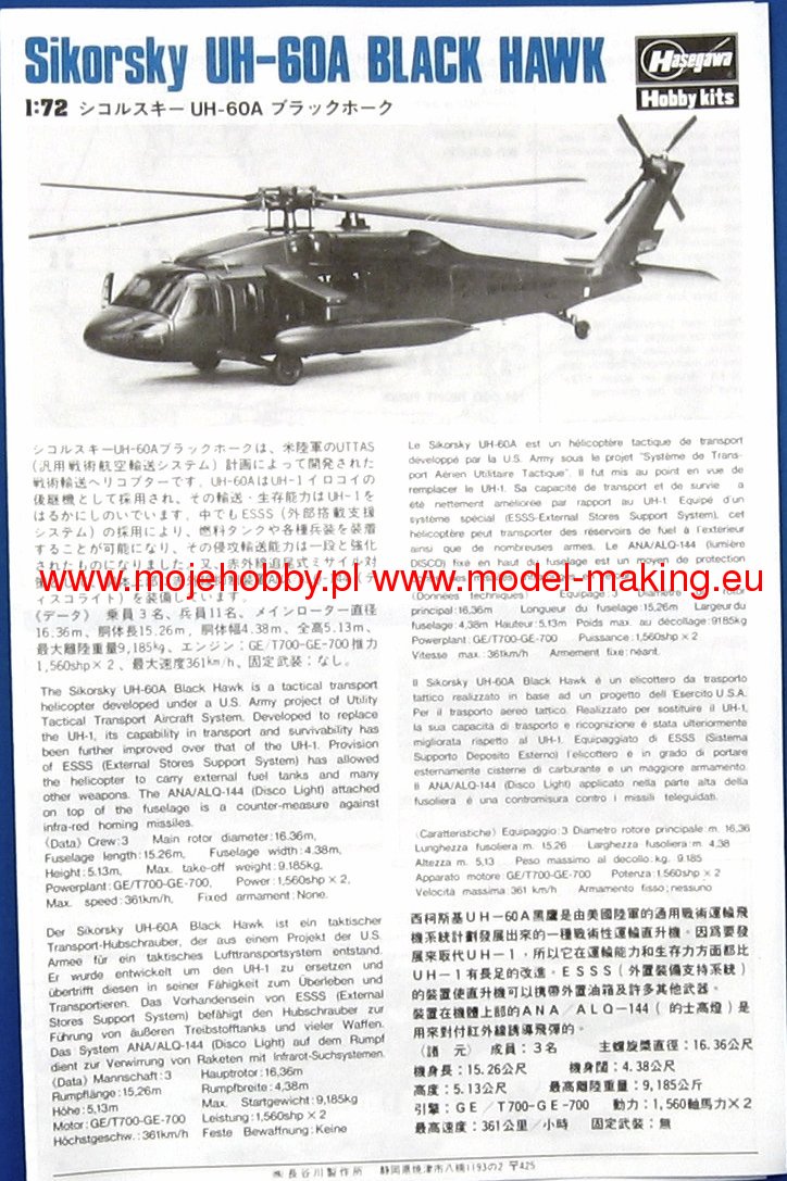 Sikorsky UH-60 Black Hawk jest średnim śmigłowcem wielozadaniowym i wsparcia piechoty produkcji amerykańskiej o konstrukcji metalowej w układzie klasycznym z wirnikiem nośnym i śmigłem ogonowym na belce. Napęd wersji UH-60 D zapewniają dwa silniki General Electric T-700-700 o mocy 1560 KM każdy. Oblot pierwszego prototypu miał miejsce w 1974 roku, a produkcja seryjna rozpoczęta w 1974 roku, trwa nadal. Szacuje się, że powstało ponad 4000 egzemplarzy tego śmigłowca do roku 2017. Sikorsky UH-60 powstał w odpowiedzi na rozpisany w 1972 roku przez US Army przetarg na nowy śmigłowiec transportowy, który miałby zastąpić maszyny UH-1 Huey. Nowa maszyna miała mieć lepsze osiągi, być tańsza w eksploatacji oraz cechować się wysoką przeżywalnością na polu walki. Wszystkie te kryteria spełniała właśnie maszyna koncernu Sikorsky, ze szczególnym naciskiem na ostatni z w/w elementów. W toku produkcji seryjnej powstało wiele wersji rozwojowych tego bardzo solidnego i udanego śmigłowca. Wersją podstawową oznaczono jako UH-60A, która służyła przede wszystkim do celów transportowych. Później wprowadzono wersję UH-60L o mocniejszych silnikach co zwiększyło udźwig maszyny. Powstała także wersja S-70 International, szeroko oferowana często z powodzeniem odbiorcom zagranicznym. Warto dodać, że w chwili obecnej (2017 r.) wersja ta jest produkowana w zakładach w Mielcu. Powstały także liczne wersje specjalistyczne np. MH-60A, która jest dedykowany amerykańskim wojskom specjalnym. Na bazie UH-60 powstała także bardzo zmieniona w stosunku do pierwowzoru wersja morska SH-60 Seahawk. Śmigłowce MH-60 brały aktywny udział w czasie interwencji w Grenadzie (1983 r.), operacji w Mogadiszu (1993 r.), obu wojnach w Iraku (1990-1991 oraz 2003), jak również w operacji w Afganistanie od 2001 roku. Zostały także wyeksportowane do bardzo wielu krajów, m.in.: Austrii, Brazylii, Chile, Egiptu, Izraela, Japonii czy Turcji. Co oprócz modelu będę potrzebować do jego sklejenia?