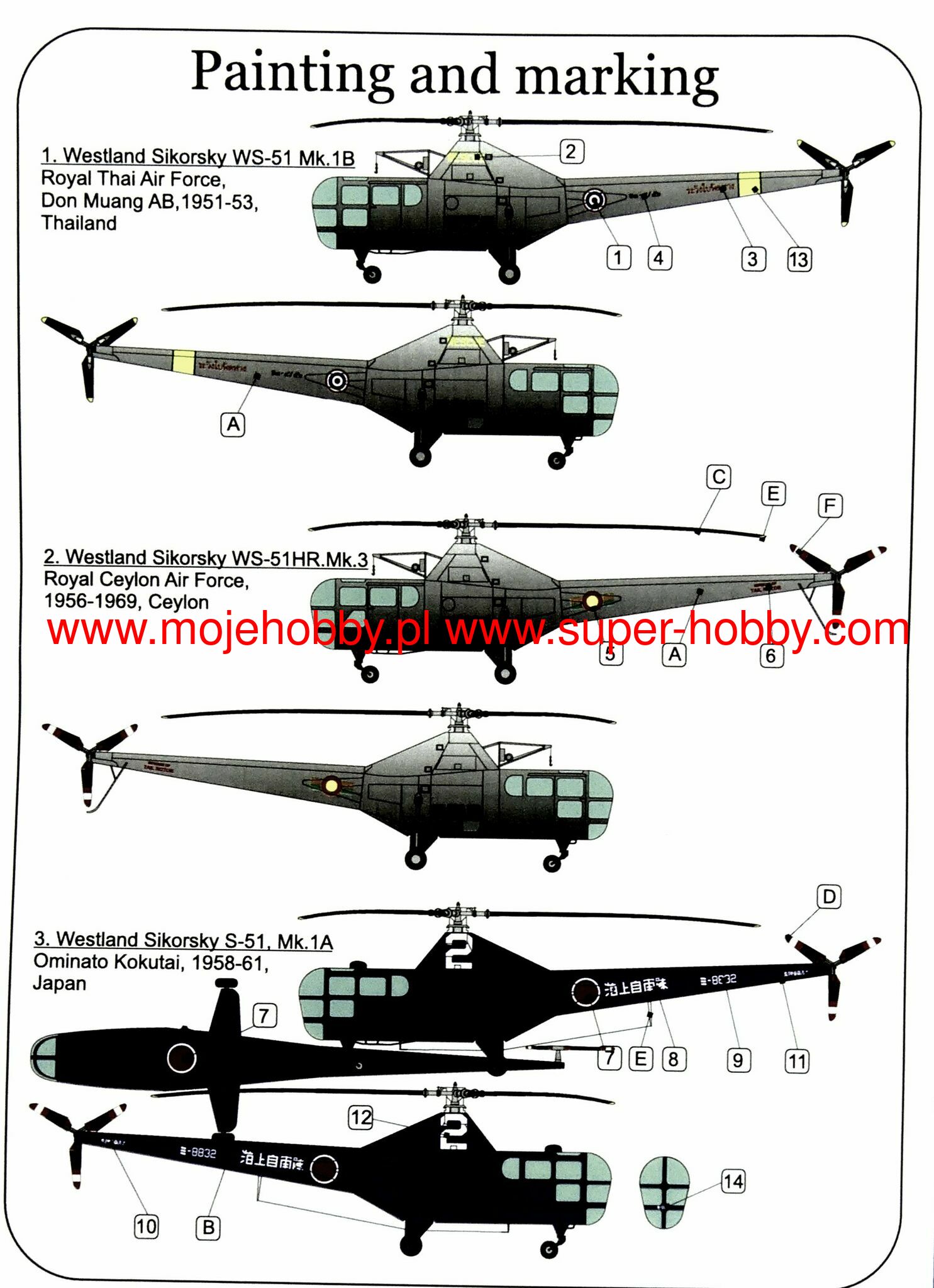 PE7238 WESTLAND SIKORSKY WS-51 DRAGONFLY THAI, CEYLON, JAPAN lf models 1/72