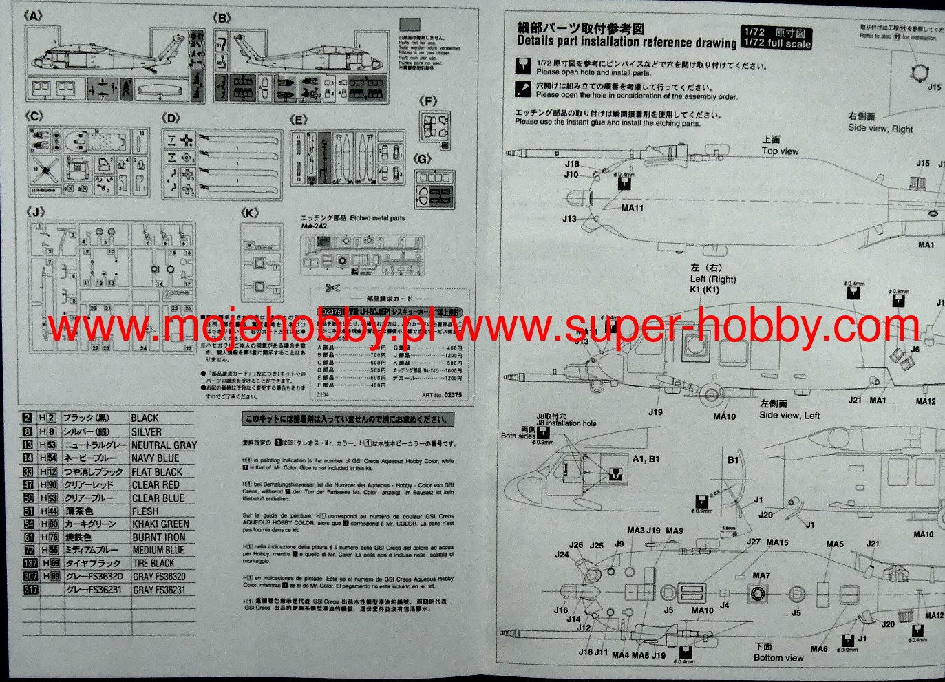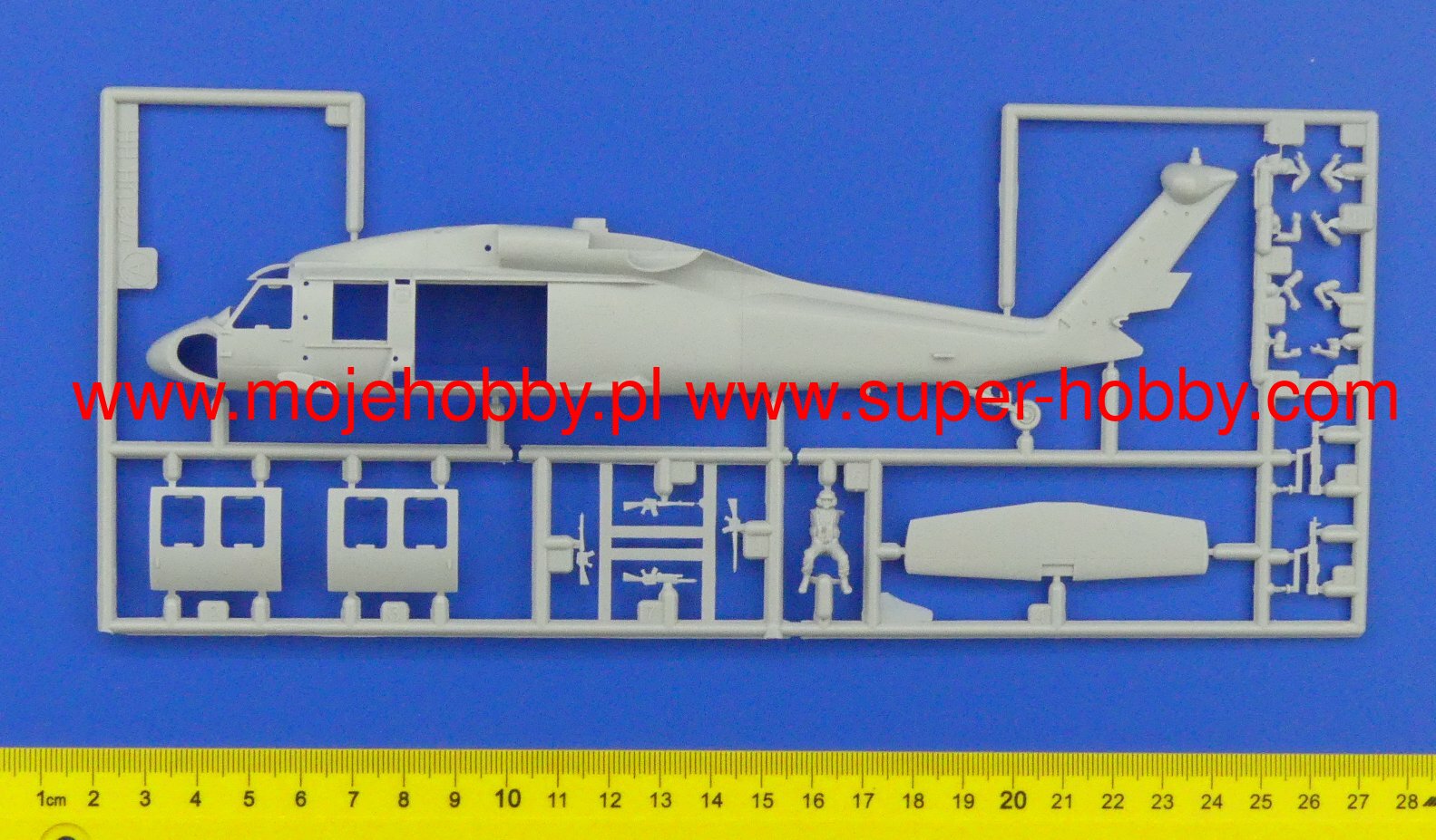 Sikorsky UH-60 Black Hawk jest średnim śmigłowcem wielozadaniowym i wsparcia piechoty produkcji amerykańskiej o konstrukcji metalowej w układzie klasycznym z wirnikiem nośnym i śmigłem ogonowym na belce. Napęd wersji UH-60 D zapewniają dwa silniki General Electric T-700-700 o mocy 1560 KM każdy. Oblot pierwszego prototypu miał miejsce w 1974 roku, a produkcja seryjna rozpoczęta w 1974 roku, trwa nadal. Szacuje się, że powstało ponad 4000 egzemplarzy tego śmigłowca do roku 2017. Sikorsky UH-60 powstał w odpowiedzi na rozpisany w 1972 roku przez US Army przetarg na nowy śmigłowiec transportowy, który miałby zastąpić maszyny UH-1 Huey. Nowa maszyna miała mieć lepsze osiągi, być tańsza w eksploatacji oraz cechować się wysoką przeżywalnością na polu walki. Wszystkie te kryteria spełniała właśnie maszyna koncernu Sikorsky, ze szczególnym naciskiem na ostatni z w/w elementów. W toku produkcji seryjnej powstało wiele wersji rozwojowych tego bardzo solidnego i udanego śmigłowca. Wersją podstawową oznaczono jako UH-60A, która służyła przede wszystkim do celów transportowych. Później wprowadzono wersję UH-60L o mocniejszych silnikach co zwiększyło udźwig maszyny. Powstała także wersja S-70 International, szeroko oferowana często z powodzeniem odbiorcom zagranicznym. Warto dodać, że w chwili obecnej (2017 r.) wersja ta jest produkowana w zakładach w Mielcu. Powstały także liczne wersje specjalistyczne np. MH-60A, która jest dedykowany amerykańskim wojskom specjalnym. Na bazie UH-60 powstała także bardzo zmieniona w stosunku do pierwowzoru wersja morska SH-60 Seahawk. Śmigłowce MH-60 brały aktywny udział w czasie interwencji w Grenadzie (1983 r.), operacji w Mogadiszu (1993 r.), obu wojnach w Iraku (1990-1991 oraz 2003), jak również w operacji w Afganistanie od 2001 roku. Zostały także wyeksportowane do bardzo wielu krajów, m.in.: Austrii, Brazylii, Chile, Egiptu, Izraela, Japonii czy Turcji. Co oprócz modelu będę potrzebować do jego sklejenia?