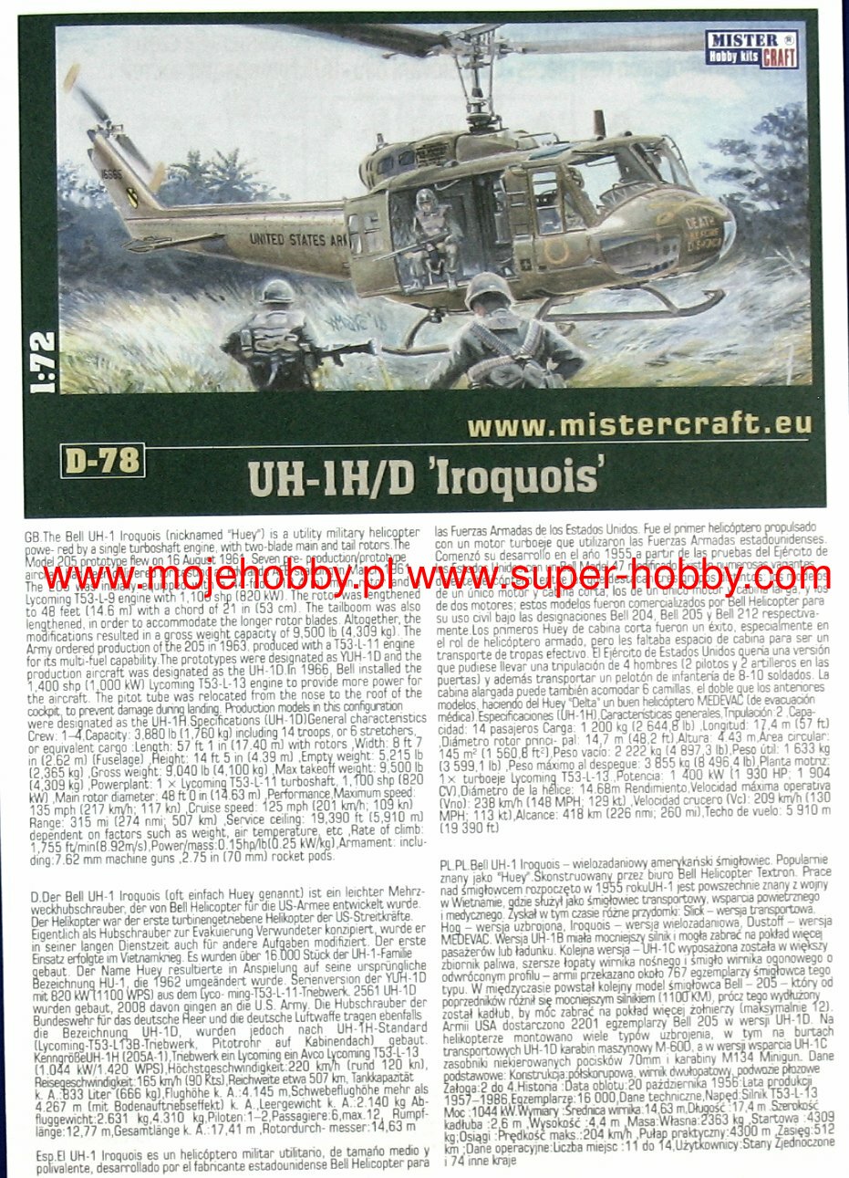 UH-1H/D 'IROQUOIS' - MODEL SET mister craft 1/72