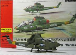 The AH-1 Cobra helicopter (Bell 209) is an attack helicopter in the classic layout, using many components of its "big brother" UH-1 Huey. The first flight of the AH-1 prototype took place on September 7, 1965 and the helicopter entered mass production in the same year. During the Vietnam War, 1,126 machines of the G model were produced, of which 279 were lost in combat. Due to the very high reliability of the structure, small side profile and good performance, the helicopter remains in service to this day in the US Marine Corps. The AH-1 allowed the US Army to fully implement the theoretical assumption of airmobile infantry ("air cavalry") through the fire support of landing infantry units. Today, the AH-1 Cobra is primarily used against an armored celon. From 1965, several versions of this successful helicopter were created, including: AH-1G (basic version), AH-1J (two-engine version), AH-1Q (version armed with TOW missiles). Technical data: Top speed: 333 km / h; maximum range (depending on version): 507-574km, armament: fixed-1 20mm M197 three-barrel cannon, slung rockets, guided missiles, unguided missiles and cannon pods.