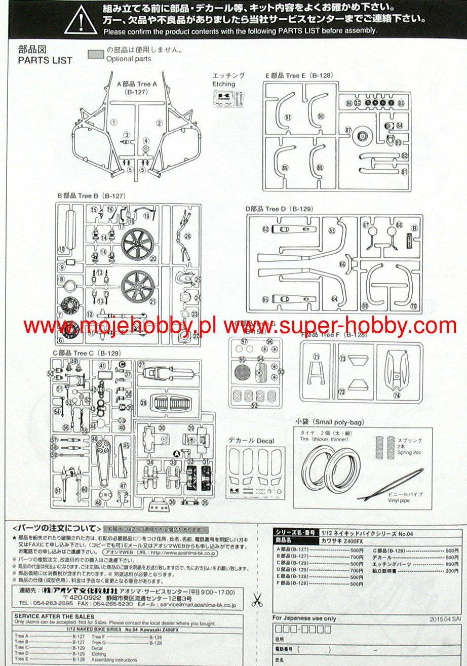 Kawasaki Z400 (inne oznaczenie: KZ400) to japoński motocykl sportowo-turystyczny, który po raz pierwszy został zaprezentowany szerokiej publiczności w 1974 roku. W tym samym czasie wystartowała jego produkcja seryjna, która trwała do 1984 roku. Produkcja seryjna odbywała się w miastach: Akashi w Japonii oraz Lincoln w Stanach Zjednoczonych. Model Z400 został stworzony i wdrożony do produkcji w celu zdobycia możliwie jak największej części segmentu motorów sportowo-turystycznych, zwłaszcza na rynku rodzimym oraz północnoamerykańskim. Od początku zakładano, że Kawasaki Z400 będzie możliwie małym motocyklem, stosunkowo tanim w eksploatacji oraz zakupie. Jako napęd wykorzystano pierwotnie 2-cylidnrowy silnik o pojemności 398 cm3. W 1980 roku wprowadzono jednak do produkcji model KZ400-J z silnikiem 4-cylindrowym. Taki silnik wykorzystywał też model Z400 GP. Od 1983 roku model Z400 zaczął być zastępowany w ofercie firmy przez Kawasaki ZR400. Co oprócz modelu będę potrzebować do jego sklejenia?