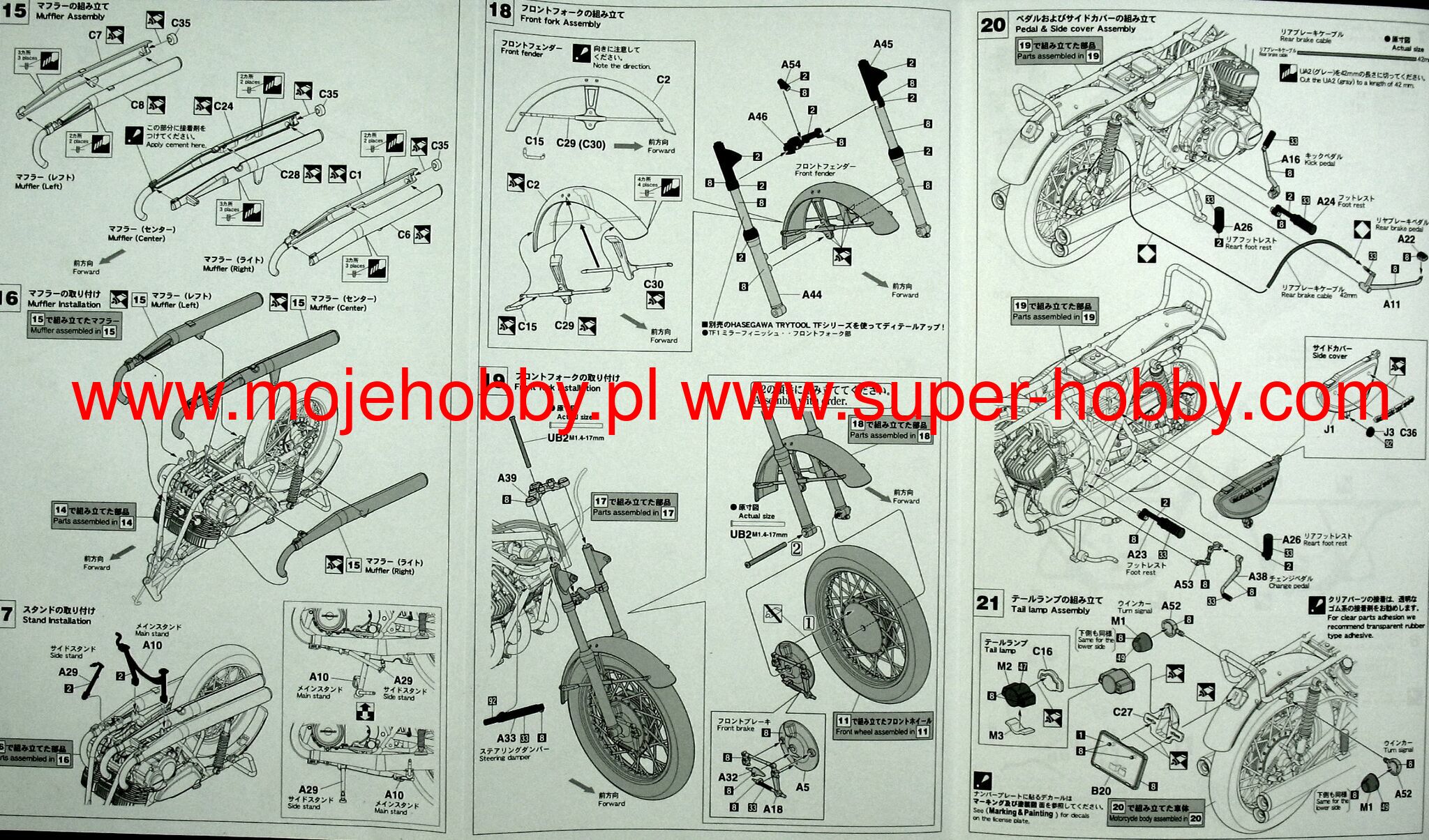 Сборная модель мотоцикла Kawasaki 500-SS/MACH III (H1)(1969) в масштабе 1:12. В коробке модель мотоцикла Kawasaki 500-SS/MACH III отлитая из цветного и хромированного пластика, и декали. Фигурка мотоциклиста в комплект не входит. Характеристики модели: Длина - 176 ммШирина - 68,5 ммВысота - 105,5 ммКол-во деталей - 157 штМасштаб - 1:12Имитация шлангов и проводов.Декали в комплекте.Хромированные детали в комплекте.Код производителя - BK-10Подставка в комплект не входит. Внимание! Краски и клей в комплект не входят.