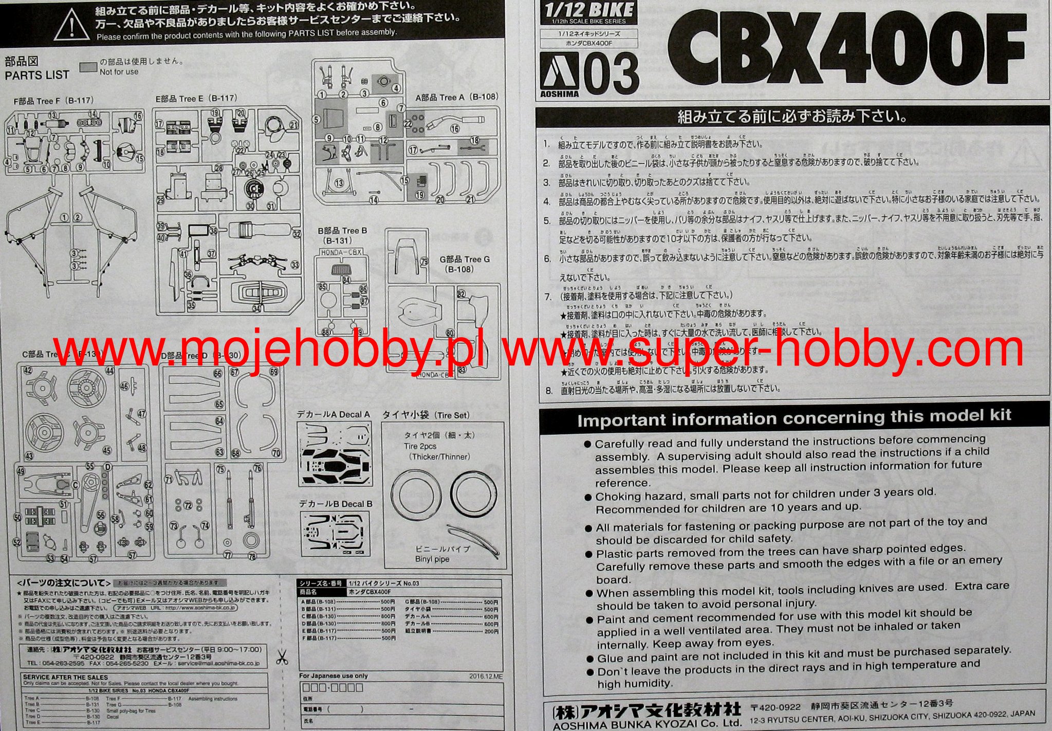 Honda CBX400F to japoński motocykl klasy sportowej, który został zaprezentowany szerokiej publiczności po raz pierwszy w 1981 roku. W tym samym roku wystartowała również produkcja seryjna, która trwała tylko do 1984 roku. Model CBX400F został opracowany w celu uzupełnia w ofercie rynkowej Honda Motor Company, a później zastąpienia w niej słynnej serii motocykli CB400F Hawk. Główna zmiana polegała na wykorzystaniu innej jednostki napędowej, która co prawda była nadal 4-cylindrowa, ale generowała większą moc sięgającą 48 KM. Dokonano także drobnych zmian w zawieszeniu zwłaszcza tylnym. Finalnie, powstał motocykl który jednak nie odniósł sukcesu komercyjnego i nie wygrał walki z modelami firm Yamaha czy Suzuki. Głównymi problemami były stosunkowo wysokie koszty produkcji CBX400F oraz mniej dopracowany silnik niż w modeli CB400F. Głównie z tych przyczyn, model był oferowany początkowo tylko w Japonii, a już po trzech latach produkcji został z niej wycofany. Co oprócz modelu będę potrzebować do jego sklejenia?
