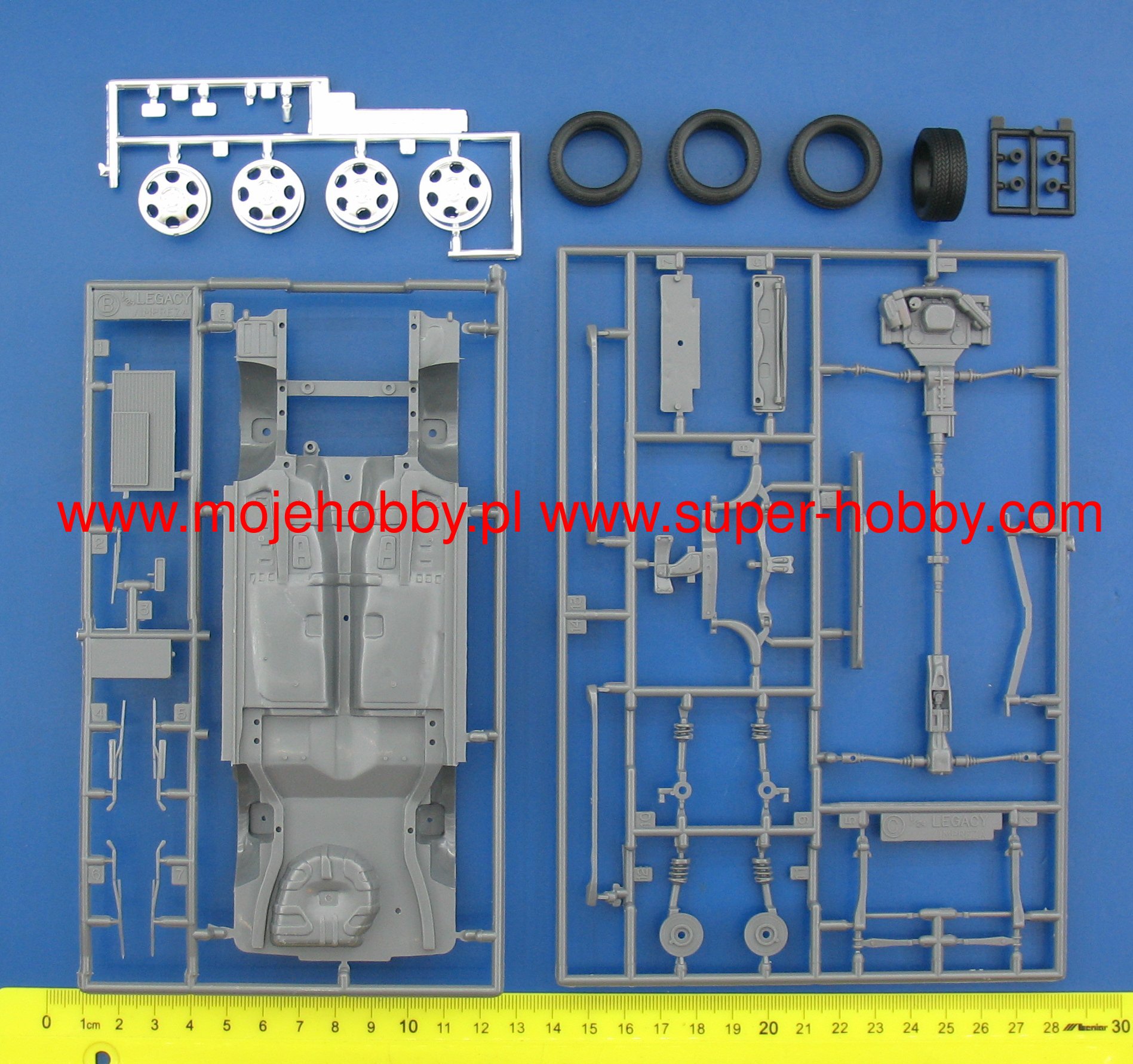 Subaru Legacy (w Australii i Nowej Zelandii znany jako Liberty) to japoński samochód osobowy klasy średniej, który został po raz pierwszy zaprezentowany szerokiej publiczności w 1989 roku. Jego produkcja seryjna wystartowała w tym samym roku i trwa nadal. W jej toku auto było i jest wytwarzane w miastach: Ota w Japonii oraz Lafayette w USA. Model Legacy został opracowany i wdrożony do produkcji w celu poszerzenia oferty handlowej koncernu Fuji Heavy Industries (znanego pod nazwą Subaru) oraz w celu nawiązania walki rynkowej zwłaszcza w Stanach Zjednoczonych z takimi samochodami jak Toyota Camry czy Nissan Altima. W toku produkcji seryjnej powstało sześć generacji tego modelu. Najnowsza z nich, została zaprezentowana w czasie Chicago Motor Show w 2014 roku. Jest ona ewolucyjnym rozwinięciem V generacji w dziedzinie stylistyki karoserii, natomiast design wnętrza stał się znacznie bardziej konserwatywny. Wóz jest oferowany z dwoma wersjami silnika: o pojemności 2,5 i 3,6 litra. Co oprócz modelu będę potrzebować do jego sklejenia?