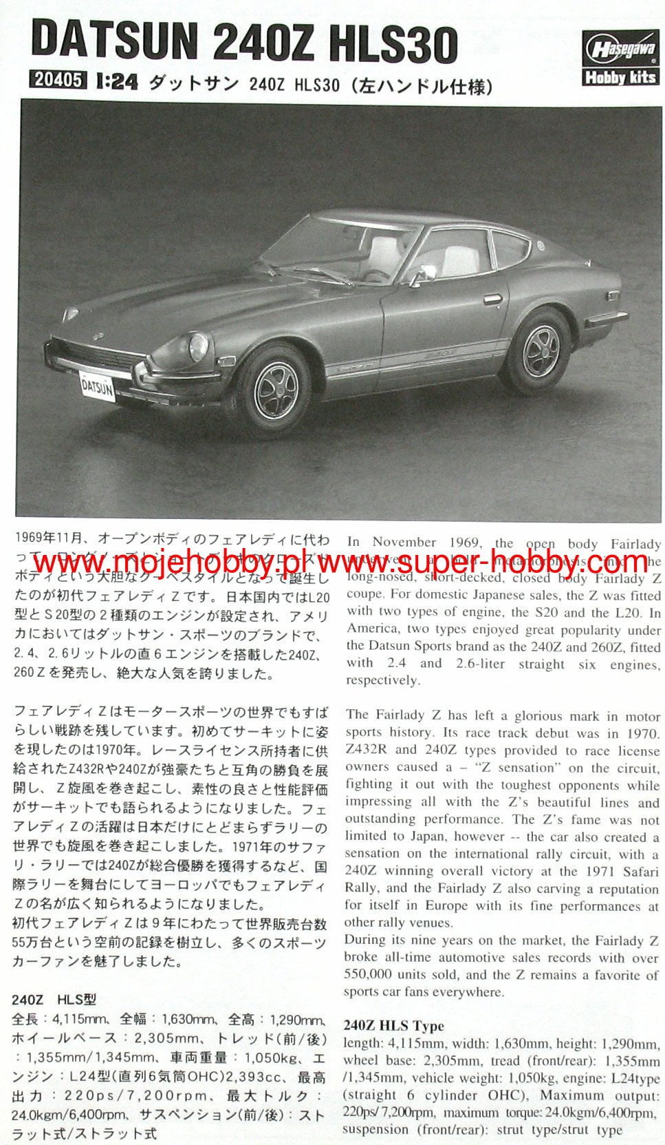 Купить DATSUN 240Z HLS30 LEFT-HAND DRIVE VERSION HASEGAWA (1/24)