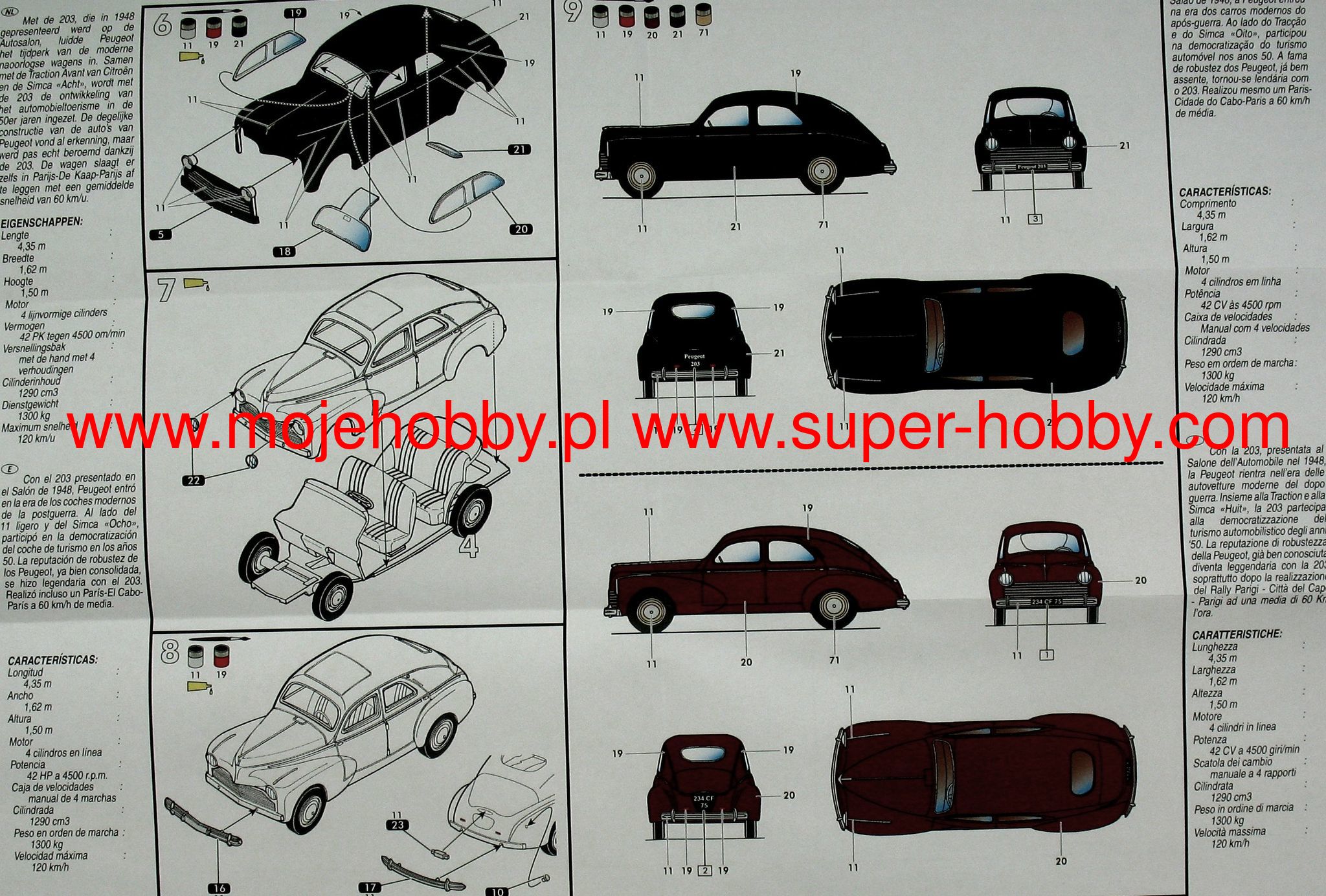 The Peugeot 203 is a French middle class passenger car that was first presented to the public in 1948. Its serial production started in the same year and lasted until 1960. About 685,000 copies of this model were produced during it. Produckaj was concentrated in the city of Sochaux in France. The Peugeot 203 was one of the first series-produced passenger cars in France after World War II. What's more, it turned out to be a great market success and gained the recognition of drivers. It was characterized by considerable ergonomics, low operating costs and high mechanical reliability. The car was also characterized by modern, for those times, styling of the body and interior of the passenger compartment. A single 1.3 liter engine with 42 to 49 hp was used as the drive. Peugeot 203 was offered in several body versions: as a 2-door and 4-door convertible, a 2-door coupe, but most of all as a 4-door fastback sedan. Peugeot 203 was replaced in the company's offer by the 403 model.