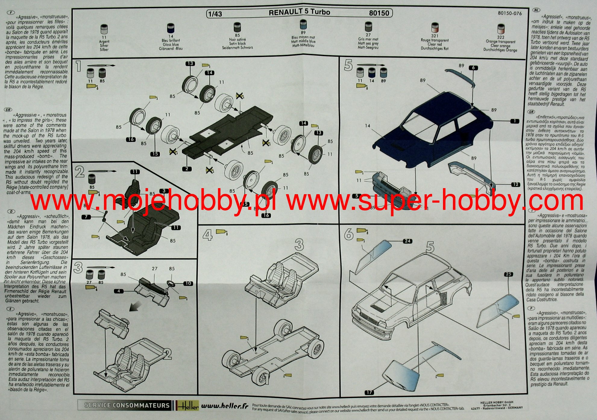 The Renault 5 (other names: Renault R5, Super 5 or Supercinq) is a French passenger car that was first presented to the public in 1972. Its serial production started in the same year and lasted until 1996 - more than 5.5 million copies of this vehicle were produced during it. Production took place in several cities, but the most important plants producing this model were in Douai, Dieppe and Flins-sur-Seine in France. Renault 5 was developed and put into production as a kind of complement to the 4L model in the company's offer, but it is worth remembering that the production of both models was carried out simultaneously for several years. The R5 model took a lot of mechanical elements from the 4L and was based on many identical design solutions. Both models, however, completely differed in design, which in the case of the R5 was much more - for those times - avant-garde and earned it the title of a cult car in France. Renault 5 was also appreciated for its very spacious interior for its class of car, low aerodynamic resistance and good traction. The car was offered primarily as a 3- or 5-door hatchback. A wide range of engines with a capacity of 0.8 to 1.4 liters served as the drive. It was replaced in the group's offer by the Clio model.