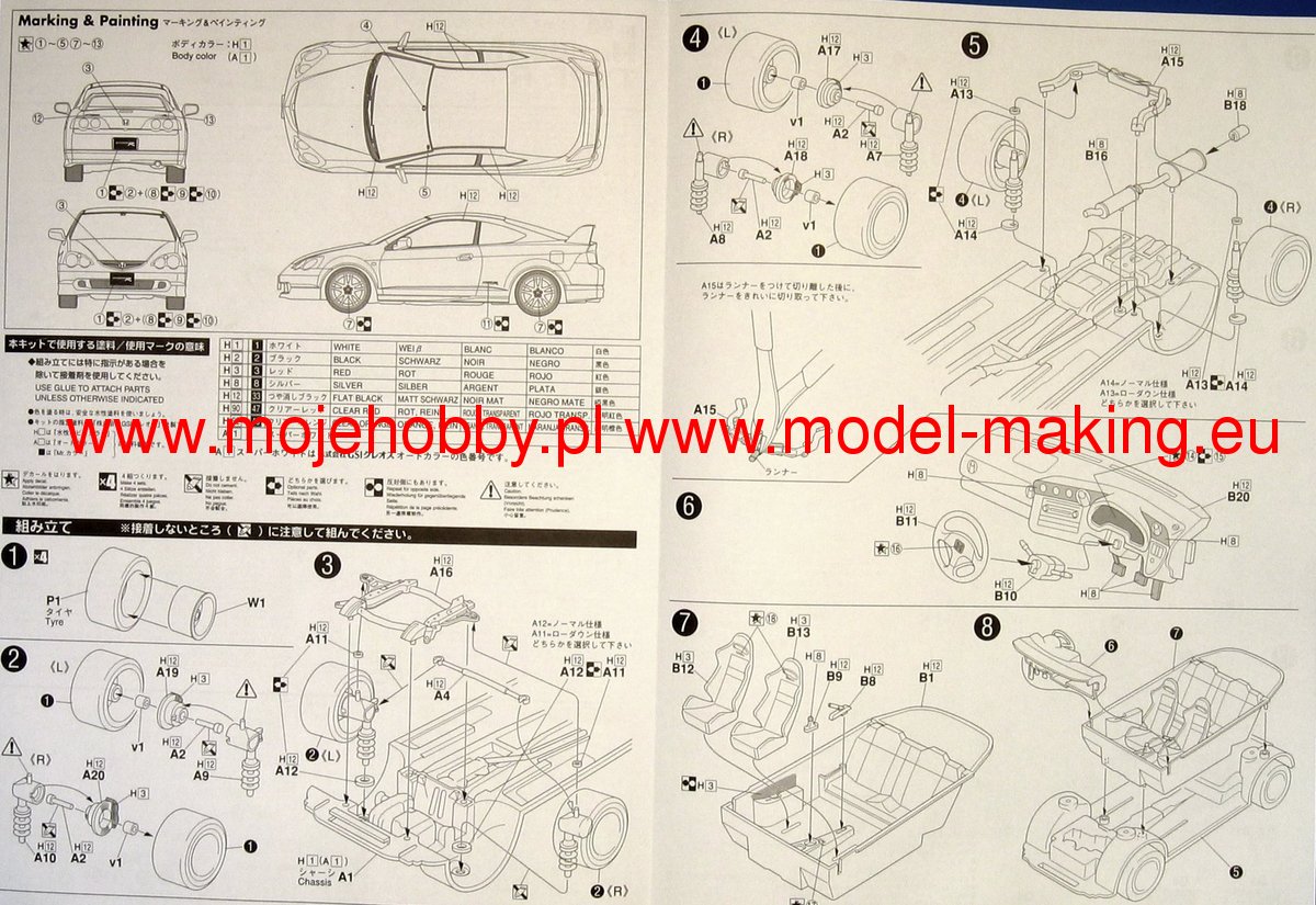 Honda Integra to japoński samochód osobowy klasy niższej średniej (compact car), który został po raz pierwszy zaprezentowany szerokiej publiczności w 1985 roku. Jego produkcja seryjna wystartowała w tym samym roku i trwałą do 2006 r. W jej toku model był wytwarzany tylko w mieście Suzuka w Japonii. Samochód doczekał się czterech swoich generacji. Model Integra został opracowany i wdrożony do produkcji w celu zastąpienia w ofercie Honda Motor Company modelu Quint. Pierwsza generacja od swojego poprzednika różniła wyraźnie stylistyką posiadała na przykład chowane, przednie reflektory. Była też oferowana w szerszej gamie nadwozi oraz oferowała większy wybór jednostek napędowych. Wykorzystywała też inną, automatyczną skrzynię biegów. Wykorzystywała też wiele elementów i podzespołów z modelu Civic. Model Integra szybko zdobył sobie popularność ze względu przede wszystkim na świetne jednostki napędowe o stosunkowo niskim spalaniu i wysokiej dynamice pracy. To przesądziło o dalszej produkcji modelu oraz jego doskonaleniu. W toku produkcji Integra była oferowana w kilku wersjach nadwozia, jako m.in.: 4-drzwiowy sedan, 3- i 5-drzwiowy liftback czy 2-drzwiowe coupe. Co oprócz modelu będę potrzebować do jego sklejenia?