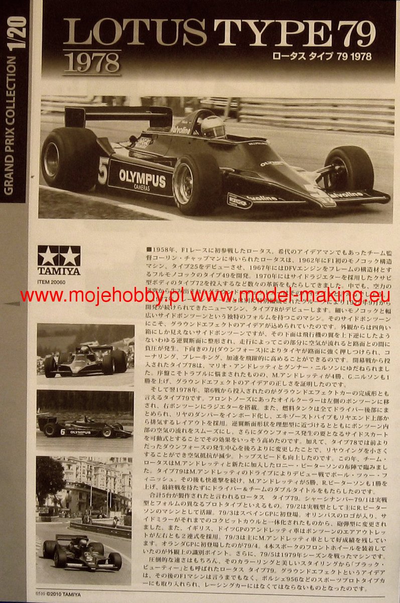 ОПИСАНИЕ ТОВАРА Набор пластиковых элементов для сборки модели гоночного автомобиля Lotus Type 79 1978 года в масштабе 1:20. Сборка элементов осуществляется при помощи специального клея. Внимание! Клей и краски в комплект не входят.