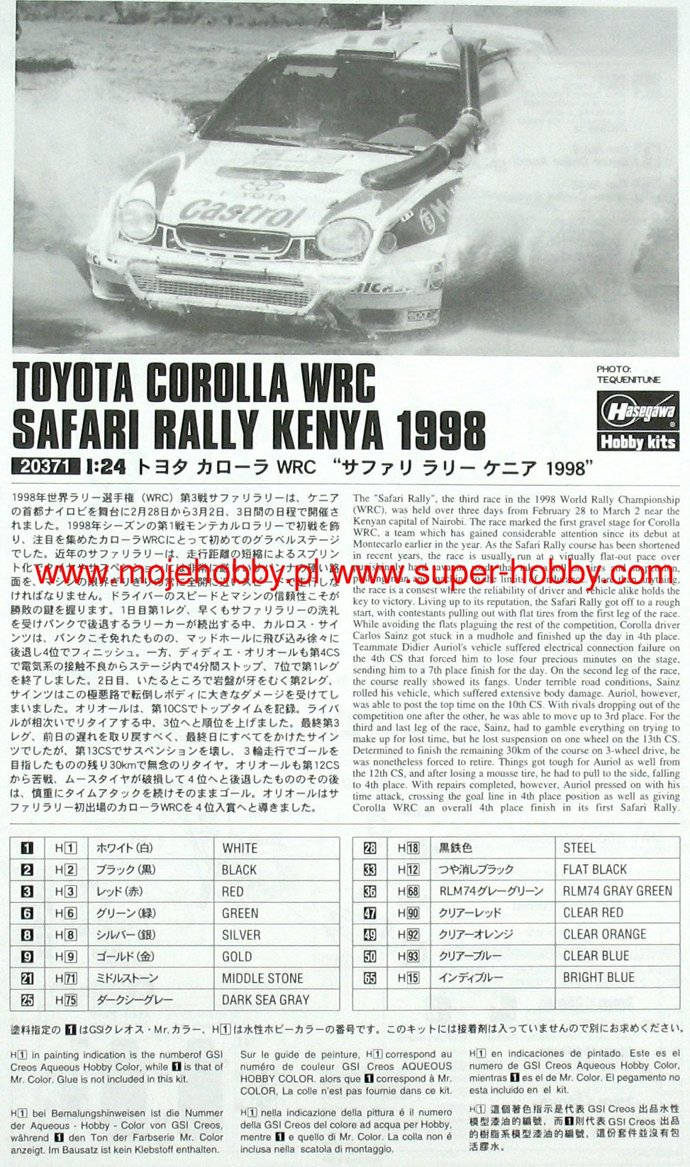 Toyota Corolla to japoński samochód osobowy klasy niższej-średniej, a obecnie średniej, produkowany przez koncern Toyota Motor Corporation, który po raz pierwszy został zaprezentowany szerokiej publiczności w 1966 roku w toku Tokio Motor Show. Jego produkcja wystartowała w tym samym roku i trwa nadal! W chwili obecnej jego produkcja jest realizowana przede wszystkim w mieście Toyota w prefekturze Aichi oraz w Burnaston na terenie Wielkiej Brytanii. Model Corolla został początkowo opracowany i wdrożony do produkcji w celu poszerzenia oferty handlowej koncernu Toyota, jak również jako uzupełnienie dla modelu Publica. Zakładano, że nowy model będzie większy od swego poprzednika, będzie wykorzystywał nieco większy silnik i będzie oferowany jak 2- i 4-drzwiowy sedan. Pracami nad projektem kierował inż. Tatsuo Hasegawa. Początkowo planowano oferować model tylko w Japonii. Samochód odniósł jednak tak spory sukces na rodzimym rynku, że kierownictwo Toyoty postanowiło oferować go poza granicami kraju, co również było udanym posunięciem. Do chwili obecnej powstało aż dwanaście generacji tego samochodu. Najnowsza została zaprezentowana na salonie samochodowym w Genewie w 2018 roku. Toyota Corolla okazała się jak do tej pory najlepiej sprzedającym się autem w historii motoryzacji, a w 2013 r. ilość sprzedanych samochodów tego modelu od początku produkcji przekroczyła 40 milionów! Co oprócz modelu będę potrzebować do jego sklejenia?