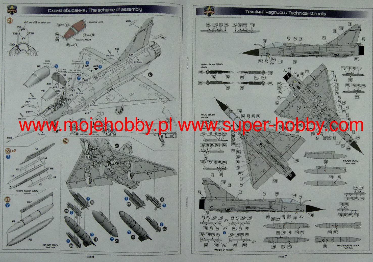 The Dassault Mirage 2000 is a French, single-engine fighter-attack aircraft with delta wings in a low wing configuration. On December 18, 1975, the French government supported the launch of the new Dassault Mirage 2000 program, an aircraft as small as possible and with a 1: 1 weight-to-thrust ratio, using the SNECMA M53-3 engine. Mirage 2000 reverts to the triangular wing concept. Thanks to the fly-by-wire control and the location of the center of gravity far back, the plane was very maneuverable. The experience gained with the Mirage III resulted in an increase in the wing area, which resulted in a lower surface load and guaranteed better flight performance at low speeds. The use of an automatically lowered leading edge associated with the movement of ailerons resulted in a change of profile, which further increased performance and controllability at low speeds. Five prototypes were built. The first flew on March 10, 1978, and the fifth - Mirage 2000B (two-seater training version) in October 1980. The first serial Mirage 2000C flew on November 20, 1982. An interesting version is also the Mirage2000N, capable of carrying nuclear weapons. According to Dessault Mirage 2000, it is capable of intercepting a target flying at an altitude of 25,000 meters at 3Ma within four minutes after take-off from the airport. Mirage 2000 is equipped with military aviation, among others. in France, Greece, India, Brazil. Technical data (Mirage 2000C version): length: 14.36m, wingspan: 9.13m, height: 5.2m, maximum speed: 2.35Ma, climb speed: 284m / s, maximum range (with overhead tanks): 3335km , maximum ceiling 18000m, equipment: fixed - two 30mm DEFA 554 cannons, suspended - up to 6000 kg of cargo.