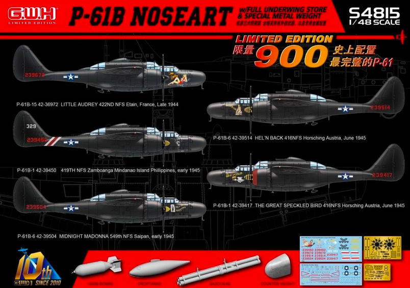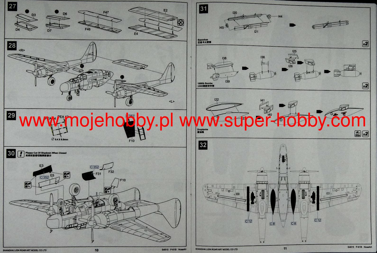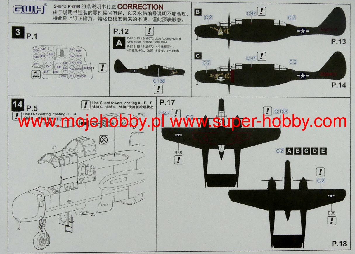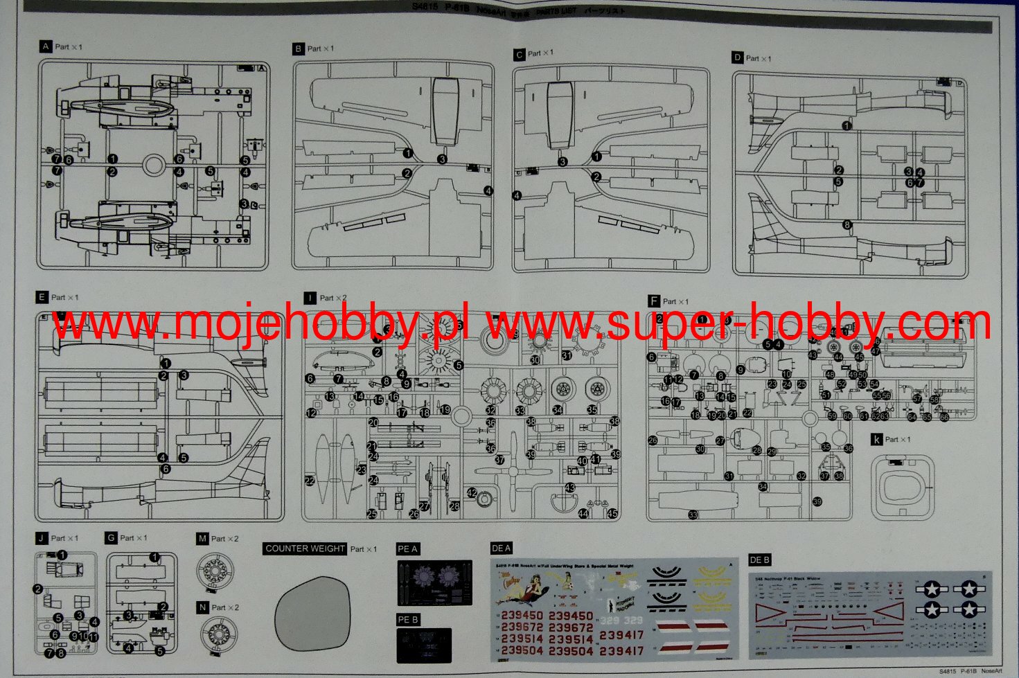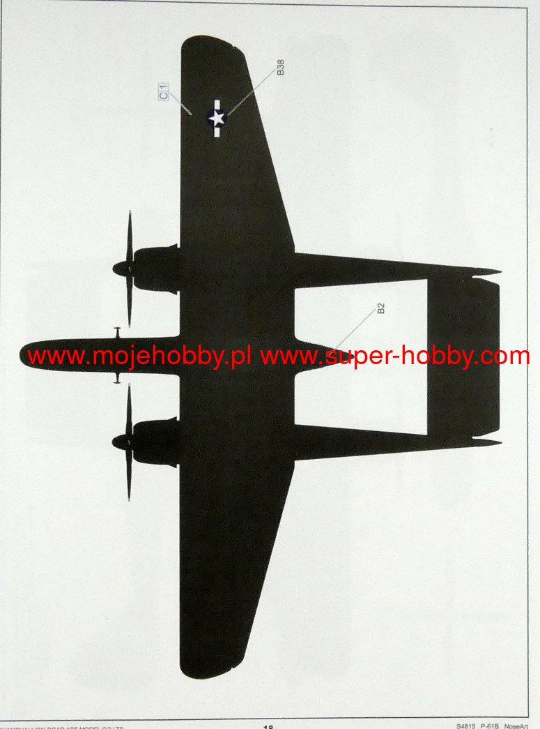 Northrop P-61 był trzymiejscowym, dwusilnikowym nocnym samolotem myliwskim, dwubelkowym redniopłatem z chowanym podwoziem, przystosowanym do operowania z baz lšdowych. Oblot prototypu nastšpił w maju 1942 roku. Samolot był w całoci wykonany z metalu, poczštkowo ze stopów magnezowych, póniej z duralu. Kadłuby belkowe o konstrukcji półskorupowej usztywnione były metalowymi wręgami. Kabina załogi, umieszczona w rodkowym kadłubie, mieciła trzyosobowš załogę. W przedniej częci zasiadał pilot, za nim strzelec pokładowy, a na końcu operator radaru. W wersjach pozbawionych wieży, operatora radaru przenoszono do kabiny strzelca, a z tyłu znajdowało się dodatkowe miejsce. Cała kabina była opancerzona. P-61 otrzymał radar pokładowy SCR-720 o zasięgu 10 km, znajdował się w nosowej częci kadłuba i był sprzężony z urzšdzeniem IFF, identyfikacji swój-obcy. Wskazania radaru odbieranie były w kabinie operatora radaru, który zasiadał z tyłu kadłuba. Uzbrojenie składało się z czterech karabinów maszynowych kal. 12,7 mm umieszczonych w zdalnie sterowanej wieży, którš nie posiadały wszystkie wersje samolotu i czterech działek kal. 20 mm umieszczonych w kadłubie. Każdy członek załogi posiadał celownik, pilot używał go w typowych atakach myliwskich, gdy kierunek lotu przeciwnika pokrywał się z lotem własnego samolotu. W innych przypadkach prowadzeniem ognia zajmował się strzelec pokładowy, który był również operatorem wieży strzeleckiej. W razie koniecznoci obrony przed atakiem z tyłu obowišzki strzelca i operowanie wieży strzeleckiej przejmował operator radaru. Dodatkowo częć maszyn, głównie operujšcych w Europie, wykonywała akcje szturmowe używajšc bomb, rakiet niekierowanych lub zbiorników z napalmem. Dane techniczne: długoć: 15,11m, rozpiętoć skrzydeł: 20,12m, wysokoć: 4,47m, prędkoć maksymalna: 589km/h, prędkoć wznoszenia: 112,9m/s, zasięg maksymalny: 3060km, pułap praktyczny: 10600m, uzbrojenie: stałe- 4 karabiny maszynowe M2 kal.12,7mm oraz 4 działka Hispano kal. 20mm, podwieszane-do 2880 kg bomb lub 6 wyrzutni pocisków HVAR kal.127mm. Co oprócz modelu będę potrzebować do jego sklejenia?