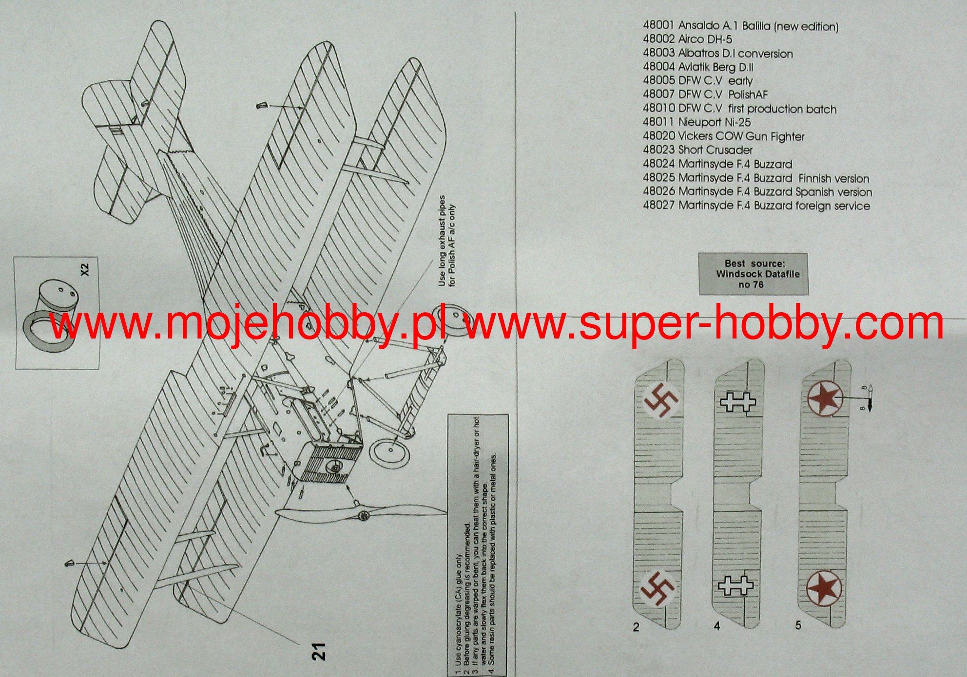 The Martinsyde F.4 Buzzard was a British mixed biplane fighter with a fixed landing gear. The drive was provided by a single in-line engine Hispano-Suiza 8Fb with power 300 KM. The prototype flight took place in 1918. In the course of serial production in the period 1918-1920, approx. 370 examples of this aircraft were made. The armament was two 7.7 mm Vickers machine guns. Martinsyde F.4 Buzzard was created as the successor of the Martinsyde G.100, RG machines, and especially the hunting version - F.3. The plane was based on many solutions of its predecessors, but most of all it had a new engine with more power and a reinforced fuselage. Martinsyde F.4 Buzzard turned out to be a plane with very high, for those times, maximum speed, great maneuverability and good piloting qualities. All this resulted in the Martinsyde plants receiving an order from both the British and French governments to mass-produce new aircraft. However, by the end of the war, only a few dozen copies of this machine were produced, which actually did not take part in the First World War. However, production continued until 1920. After 1918, the Martinsyde F.4 Buzzard plane was exported to, among others, Finland, Japan, Poland and Portugal.