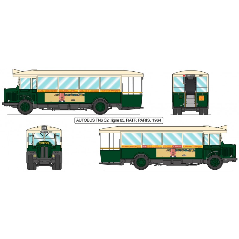 Parisien TN6 C2 is a French city bus from the interwar period, World War II and post-war years. The vehicle was 9.5 meters long and 2.95 meters wide. The wheelbase was 5.05 meters. The maximum weight was around 10,300 kilograms. The drive was provided by a single, 6-cylinder petrol or diesel engine with a power of 67 or 94 HP. The TN series buses were introduced to the city and suburban transport of the Paris agglomeration in the 1930s. Vehicles of this type were to enable relatively easy and cheap movement around the agglomeration, and could carry up to 50 passengers. The TN4A model was used on urban routes, while the TN6 model on fairly long suburban routes. Buses of this series - especially TN6 - were characterized by a very Solina construction and considerable maneuverability for vehicles of this class. Interestingly, during the German occupation of Paris in 1940-1944, buses of this type were powered by special coal-fired generators. Of course, this had a negative impact on driving dynamics, but it had a very positive effect on the economy of operation. The last bus of the TN series was withdrawn in 1969!