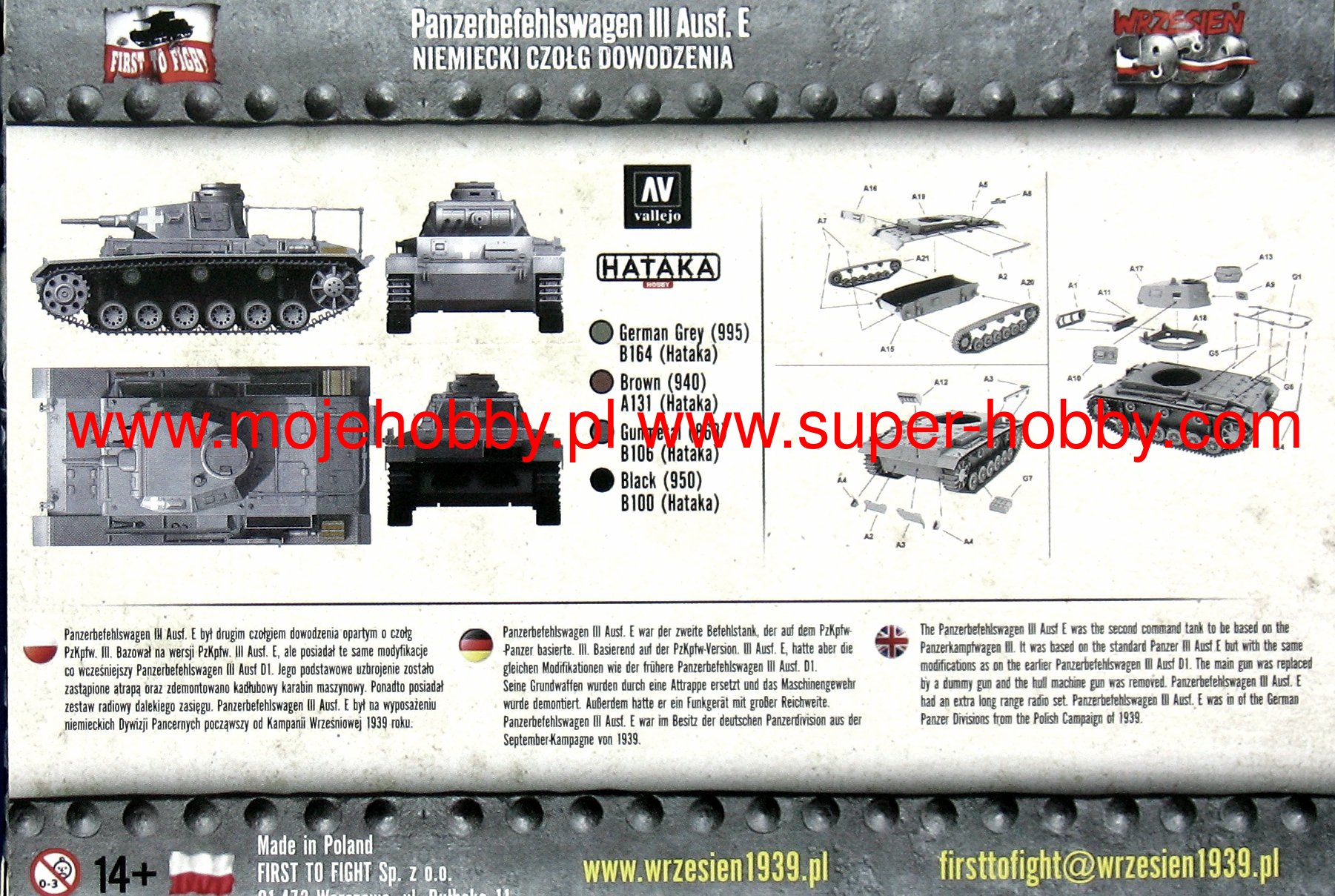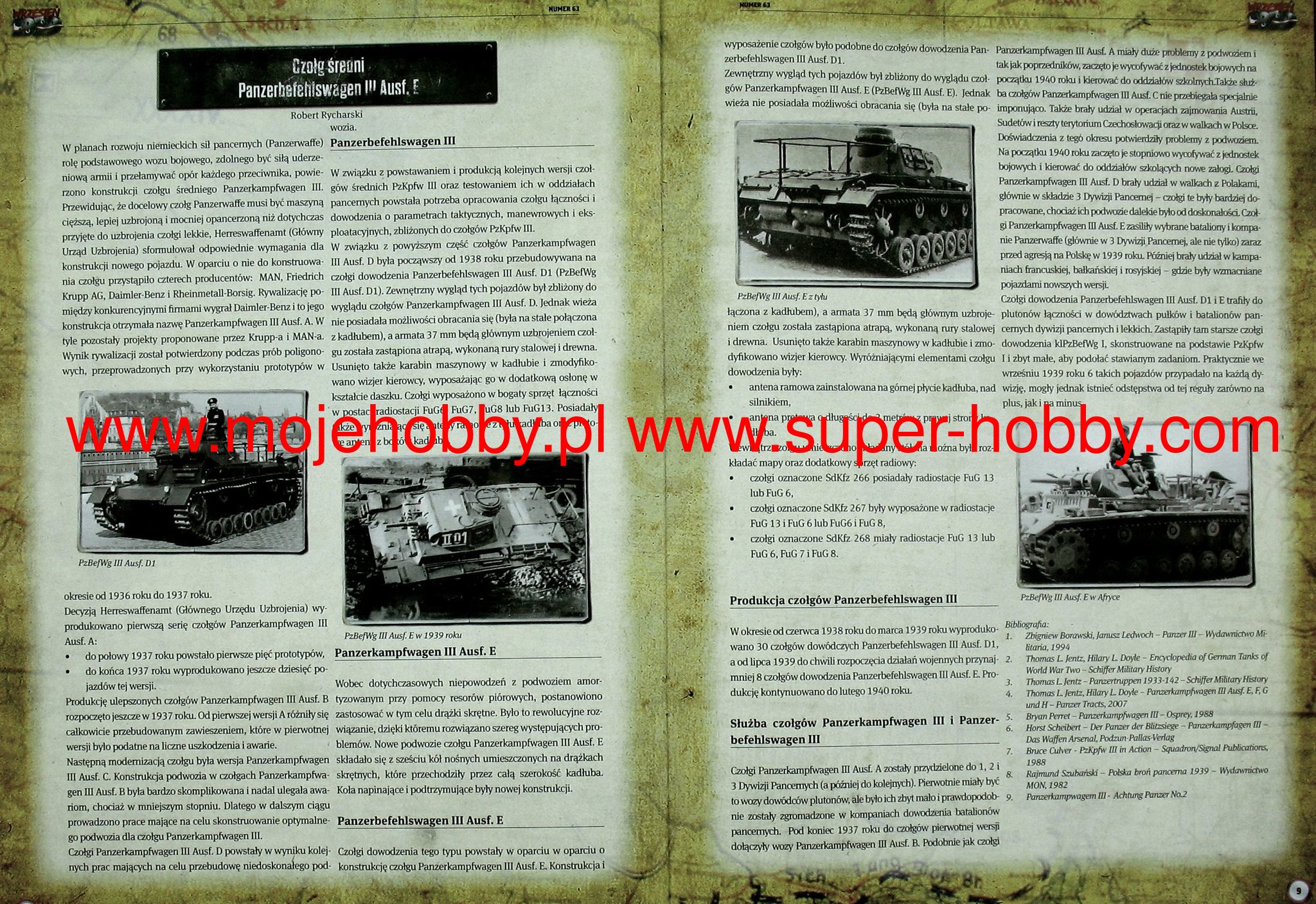 Panzerbefehlswagen III[w skrócie: Pz.Bef.Wg. III] was a German command tank from the Second World War. The wagon length was 5.56 m, with a hull width of 2.9 meters. The tank was powered by a single Maybach HL 120 TRM engine with 300 hp. The maximum speed on the road was up to 40 km / h. With the intensive development of the German Panzerwaffe in the second half of the 1930s, it became clear that in order to effectively command tanks on the battlefield, specialized command vehicles would be needed, which in the German army were called Panzerbefehlswagen. Initially, they were based on vehicles built on the Panzer I chassis (Kleiner Panzerbefehlswagen), but relatively quickly such vehicles began to be constructed on the basis of the Panzer III tank. The cars rebuilt in this way were called the Panzerbefehlswagen III. The first version to undergo such an overhaul was the Ausf. E, which received a loop antenna at the rear of the vehicle, a relatively powerful radio inside the tank and only a dummy 37 mm gun. However, in the course of hostilities, the dummy gun was replaced with a 50mm gun, and Ausf versions were rebuilt for the command tanks. J and Ausf. M. Rebuilt version of the Ausf. The M for the command tank was called Pz.Bef.Wg. III Ausf. K i had a modified turret compared to the original.