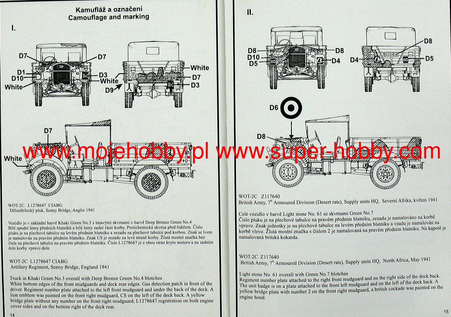 The Fordson WOT-2 is a British military truck from World War II. The first prototypes of these cars appeared in 1939, and the production of serine began in the same year, which continued until 1945. Approximately 60,000 trucks of this type were built in its course. The total weight of the cart was 3.4 tons, its length - 4.5 meters, with a width of 2 meters. The drive was provided by a single engine with a power of 60 HP. The Fordson WOT-2 was developed at the beginning of World War II as the smallest in a series of trucks intended for the British Army. Interestingly, the WOT vehicles were designed from the beginning as cars intended for the armed forces, and their production took place at the Ford plant in Dagenham, hence the term Fordson. In the course of production, minor changes and design improvements were constantly made, which were expressed by the use of markings from A to H (for example: WOT-2D). However, all of them were characterized by a simplified design and ease of mass production. At the same time, they were rather reliable and were used by the British Army until 1950.