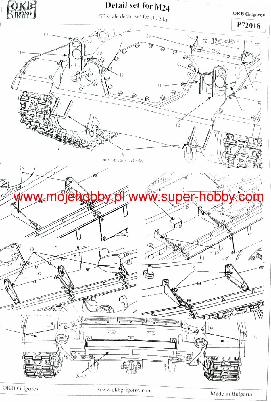 The M24 Chaffee was an American heavy light of the Second World War. The first prototypes were built in 1943, and serial production was carried out in the period 1944-1945. In total, about 4,700 copies of this tank of all versions were built. The M24 Chaffee was powered by a double engine Cadillac Twin 44T24 with a total power of 220 HP . It was armed with a single 75mm M6 cannon, two 7.62mm Browning 1919A4 machine guns and a single 12.7mm Browning M2HB machine gun. The M24 Chaffee was created as the successor to the M3 / M5 Stuart light tank series. In designing it, the emphasis was on stronger main armament (a 75mm gun instead of a 37mm gun), better shaped armor, greater off-road capability, and easier handling - especially in the engine compartment. During World War II, several specialized vehicles were built on the chassis of the M24 tank, including the M19 self-propelled anti-aircraft gun and the M41 Gorilla self-propelled howitzer. The first M24 Chaffee began to hit the line in mid-1944. They took part in the battles in Normandy, France and West Germany (1944-1945), but also in Italy in the period 1944-1945. After 1945, the M24 Chaffee was also exported to many countries, including Austria, Belgium, Chile, France, Greece and Pakistan. M24 took part in several conflicts after the end of World War II, including the Korean War (1950-1953), the war in Algeria (1954-1962) and Indochina (1945-1954).