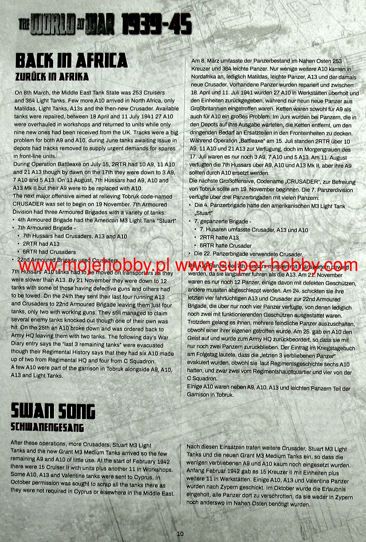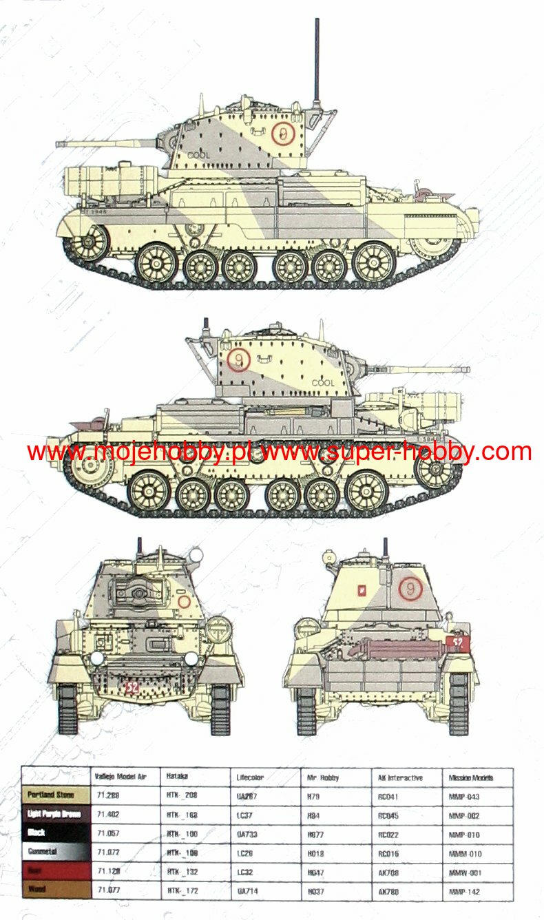 Cruiser Tank A10 (also known as: The Cruiser Tank Mark II) was a British high speed / pursuit tank from the interwar period and World War II. The first prototypes of the vehicle were made in 1936, and serial production continued in the years 1938-1940, ending with the production of about 200 examples. The wagon length was about 5.6 m, with a width of about 2.5 m and a height of about 2.65 meters. The tank was powered by an engine AEC A179 with 150 hp . The basic armament of the vehicle consisted of a single 40 mm 2-pounder cannon and 2 Vickers and BESA 7.7 and 7.92 mm machine guns. The Cruiser Tank A10 was developed as a highly modernized version of the A9 car. Compared to its predecessor, it was distinguished mainly by the dismantling of the turrets at the front of the car, which housed machine guns, and by strengthening the armor, especially in the front part of the turret and the hull. At the same time, however, the same drive unit was retained, which with the increased weight of the car meant that its performance decreased compared to the A9 model. The Cruiser Tank A10, like its predecessor, was not a particularly successful tank, but it was characterized by high mechanical efficiency, it was reliable (also in desert conditions), and its main armament allowed it to destroy virtually any German or Italian tank at the beginning of World War II. The vehicle underwent its baptism of fire during the fighting in France in 1940, and was later used during the fighting in Greece in 1941 and during the initial period of the campaign in North Africa (1940-1943).