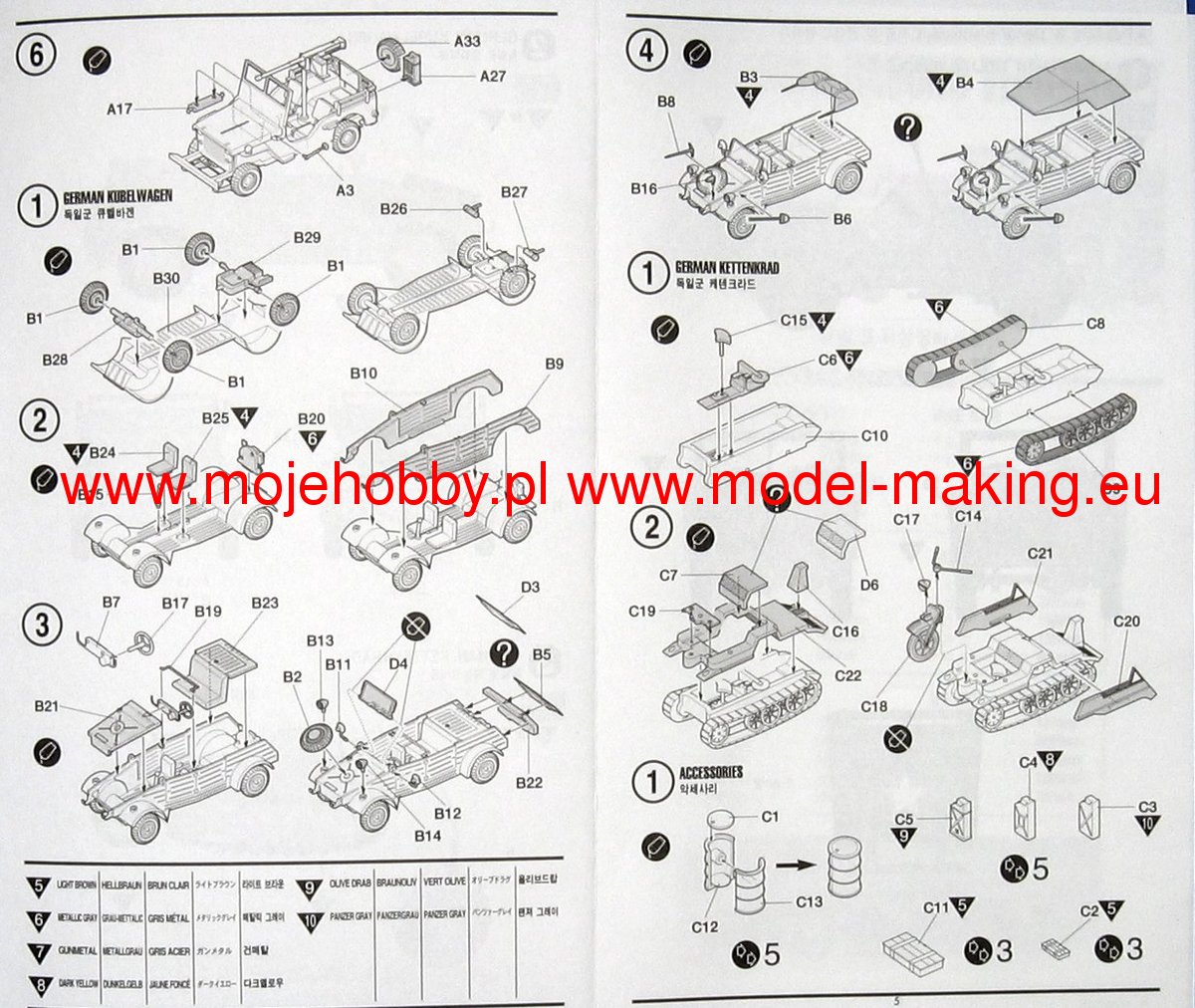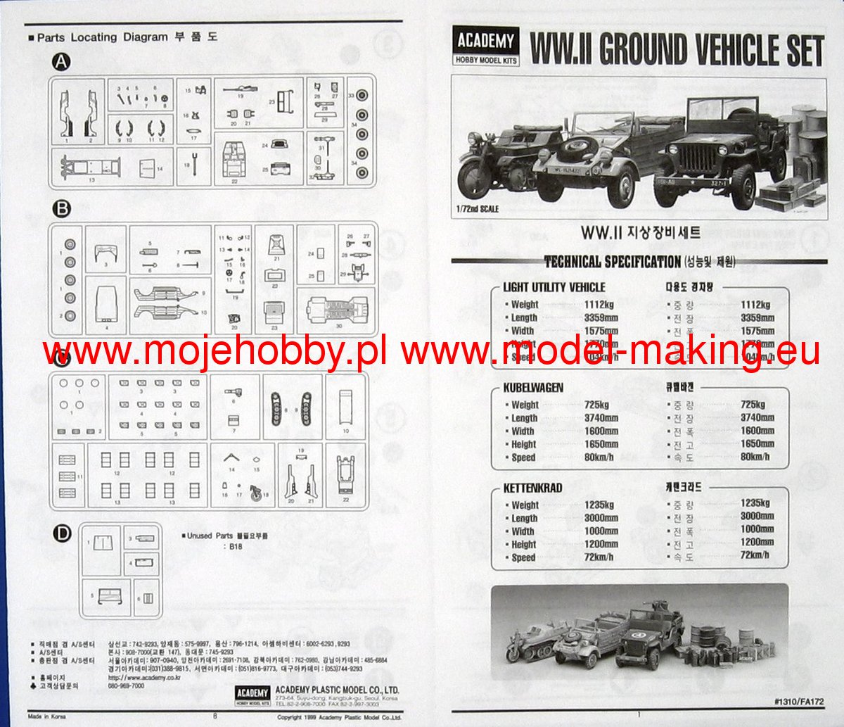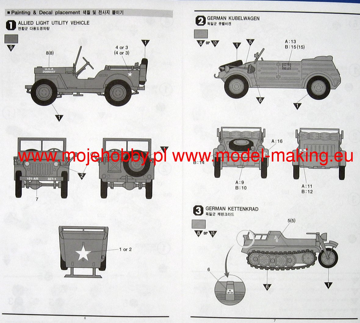 Jeep Willys (other names: Willys MB, Jeep) is an American off-road car from the Second World War and the post-war period. The first prototypes of the car were built in 1940, and serial production was carried out in 1940-1945. Nearly 650,000 copies of it were created in its course! The weight of the cart was about 1.1 tons, with a length of 3.36 meters and a width of 1.57 meters. The drive was provided by a single engine with a power of 60 HP. The maximum speed was up to 105 km / h. The Jeep Willys was developed to order and demanded by the US Army, which in 1940, faced with the war, asked for a completely new 4x4 passenger car with a load capacity of up to 250 kilograms, which could be mass-produced. It is worth adding that initially the American Bantam Car with the Bantam BRC was the clear favorite in the tender. However, the US Department of Defense, striving to ensure the best possible car design and trying to ensure trouble-free series production, handed over the plans for the Bantam BRC to the Willys and Ford plants. Based on these plans, Willys developed a Jeep that had a much better power unit than the original Bantam BRC, as well as being mechanically more perfect. Ultimately, it was this car, the Willys Jeep, that won the tender for the US Army. The presented car was actually mass-produced and went to almost all Anglo-Saxon armies fighting in World War II, and thanks to the Lend-and-Lease program, also to the Soviet Union. He took part in hostilities in North Africa, Italy, Northwest Europe and the Pacific. It is often assumed that the Jeep Willys is one of the symbols of American triumph in World War II.The Sd.Kfz.2 (kleines Kettenkraftrad Sd.Kfz. 2) is a German light multipurpose vehicle from the Second World War. This vehicle was a kind of combination of a motorcycle and a tracked tractor. The prototype was built at the NSU-Werke plant in 1940. In June 1941, it was officially accepted into the Wehrmacht armament. In total, by 1945, more than 8,000 of these vehicles were built. Interestingly, the production continued after the war, for civilian needs. The basic tasks of Sd.Kfz.2 are, above all, transporting small loads, towing light guns and laying telephone cables. Sd.Kfz.2 served primarily in North Africa and on the Eastern Front, on a large scale from 1942. The vehicle had great off-road characteristics and a high top speed. The downside was the highly complex structure, especially the suspension. Technical data: length: 3m, width: 1m, height: 1.2m, engine power: 36KM, range (on the road): 250km, maximum speed (on the road): 70km / h, weapons (Sicherungsfahrzeuge version): 1 machine gun MG-34 cal.7.92mm.