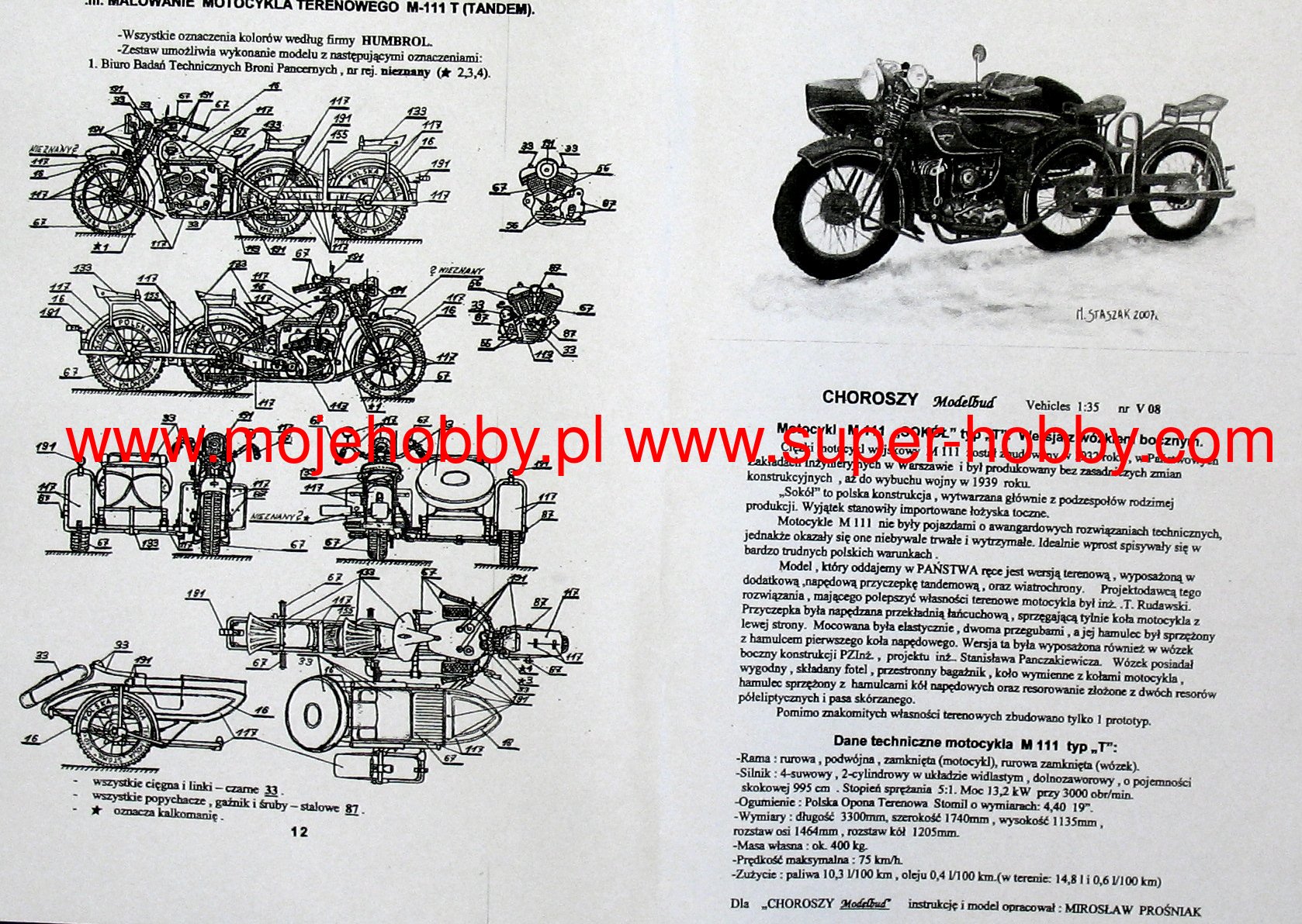 HEAVY MOTORCYCLES M111 SOKÓŁ (FALCON) 1000 TYPE T WITH SIDE CAR choroszy modelbud 1/35