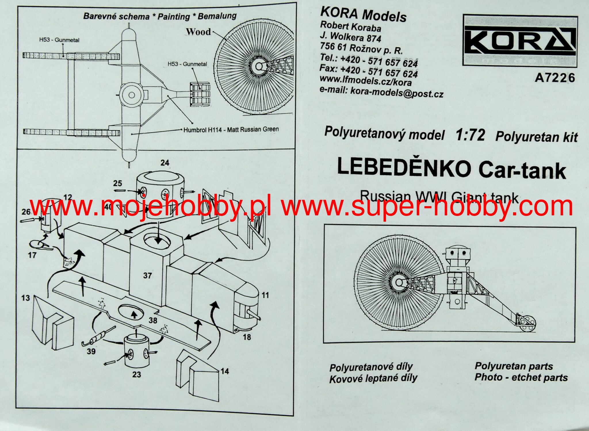 The Lebiedenka tank (other designations: car-tank or bats) is a Russian prototype armored vehicle from the First World War. The drive was provided by two Maybach combustion engines with a capacity of 240 HP each. The only prototype of the vehicle was developed in 1915. It was assumed that the vehicle would be armed with two guns - probably 76.2 mm caliber and two 7.62 mm Maxim machine guns. The so-called Lebiedenka's tank was developed as a grassroots initiative by engineer Lebiedenko, who developed a completely unusual design. His vehicle moved on a three-wheeled chassis, with the two front wheels having a diameter of as much as 9 meters, and the rear - only 1.5 meters. This arrangement was to facilitate overcoming terrain obstacles, especially enemy trenches. The crew cabin with weapons was installed about 5 meters above the ground. In the course of the tests, it turned out, however, that the Lebiedenka tank is a completely unsuccessful design due to the fact that the engines are far too weak and that it is highly susceptible to artillery fire. The downside was also the low top speed. Ultimately, the only copy of this atypical vehicle was scrapped in 1923.