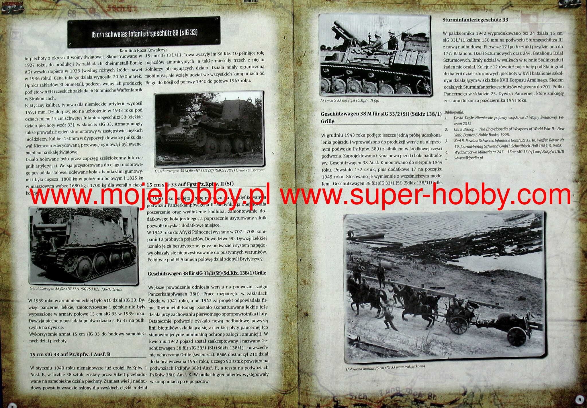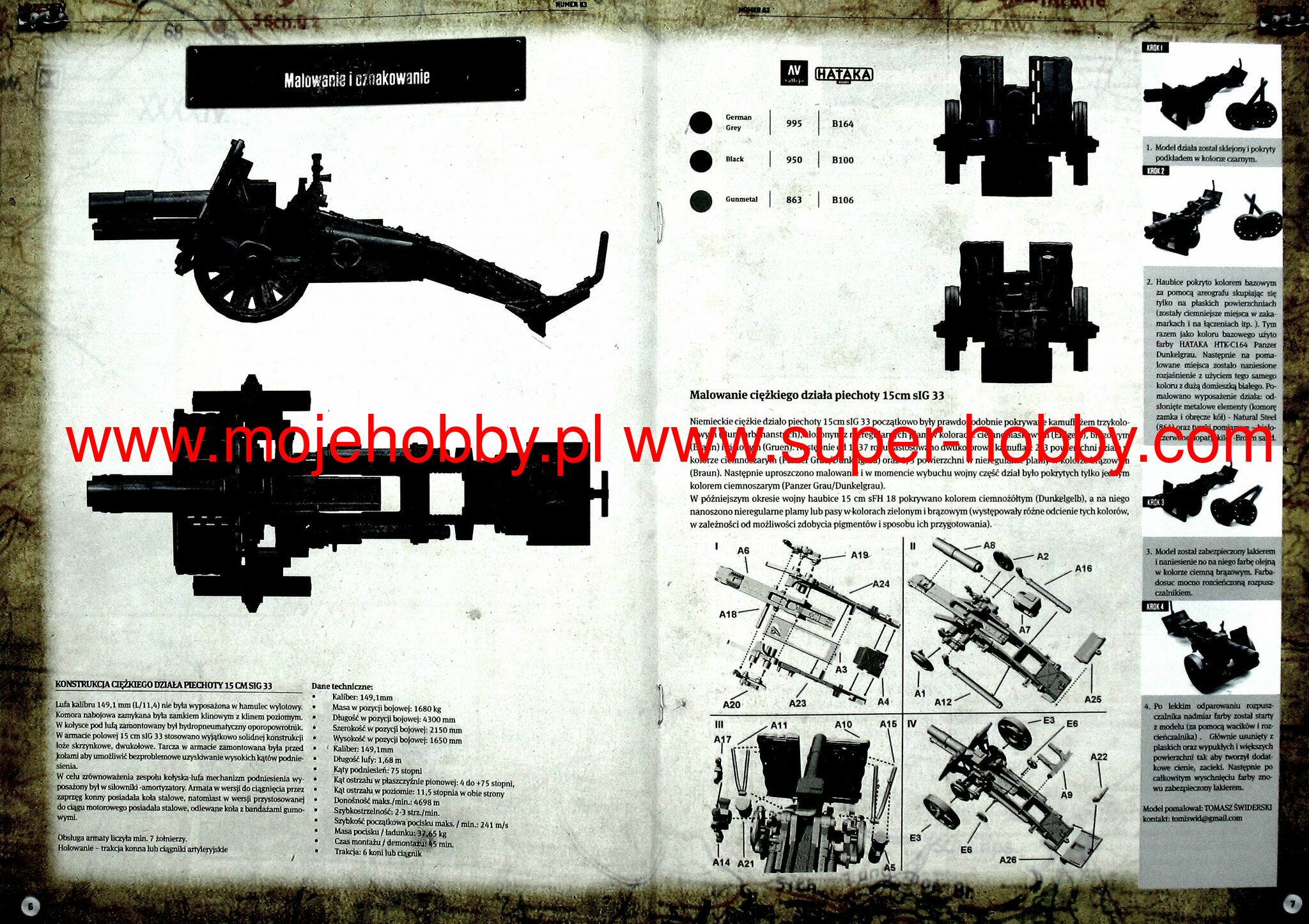The sIG 33 (German: schweres Infanterie Geschutz 33) is a German 150mm towed heavy infantry gun from the Second World War. The first prototypes of the guns were created in 1927, and in the years 1936-1945 serial production continued, ending with the production of about 4,200 examples of this weapon. The maximum range was 4,700 m, and the initial velocity of the projectile - 240 m / s. sIG 33 was created as a result of the German experience from the First World War, which clearly showed that in the battle of infantry it is extremely important to support it by own accompanying artillery. Therefore - after a long discussion in the professional press - the German army decided to create a 150 mm caliber gun (precisely the SIG 33), which was to be a cannon accompanying the infantry regiments and directly subordinate to them. a powerful firefighting tool. While the concept itself was innovative, the SIG 33 gun was traditional in design - what's more, it turned out to be very heavy and for a long time it was aimed at reducing its weight in order to increase its maneuverability. The sIG 33 cannon has also become the basic armament of such vehicles as, for example, the Sturmpanzer II, the Sturmpanzer IV Brummbar or the Grille. The German army used the SIG 33 throughout the entire period of World War II.