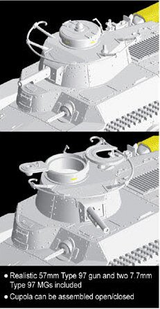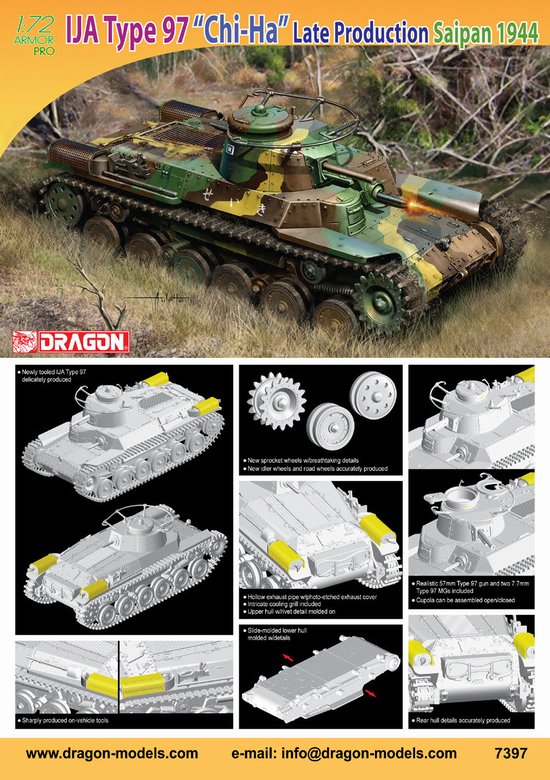 The Type 97 Chi-Ha was a Japanese medium tank from the Second World War. The first prototypes were built in 1936, and serial production continued in 1938-1943. In total, about 1,200 copies of this tank were built. The Type 97 was powered by an engine Mitsubishi SA 12-200VD with 170 HP. The armament of the vehicle - the basic version - was a single 57 mm Type 97 tank gun and two 7.7 mm Type 97 machine guns. The Type 97 Chi-Ha was developed in response to a demand from the Japanese Army High Command for a new medium tank. The arsenal of the army in Osaka and the Mitsubishi concern stood up to compete. Based on the experience of the Spanish Civil War and observations from the war in China, a decision was made to adopt a tank developed by Mitsubishi, the Type 97 Chi-Ha. The new tank had good off-road mobility, but also - as shown in the clashes with the T-26 and BT-5 vehicles over Chałchyn-Gol - completely outdated armament and too thin armor. As a result, a decision was made to modernize the car, which led to the Type 97 Shinhoto Chi-Ha version, which was developed in 1940. It featured a new 47mm Type 1 cannon, an enlarged hull and an improved engine cooling system. Type 97 tanks fought in China (1937-1945), against the Red Army in 1938-1939 and during the Pacific War of 1941-1945, especially intensively in the first - offensive phase of this conflict - in 1941-1942, especially in the Philippines and Malaya . Tanks Captured by Chinese troops during the Japanese-Chinese War, the Type 97 Chi-Ha also fought in the Chinese Civil War 1945-1949.