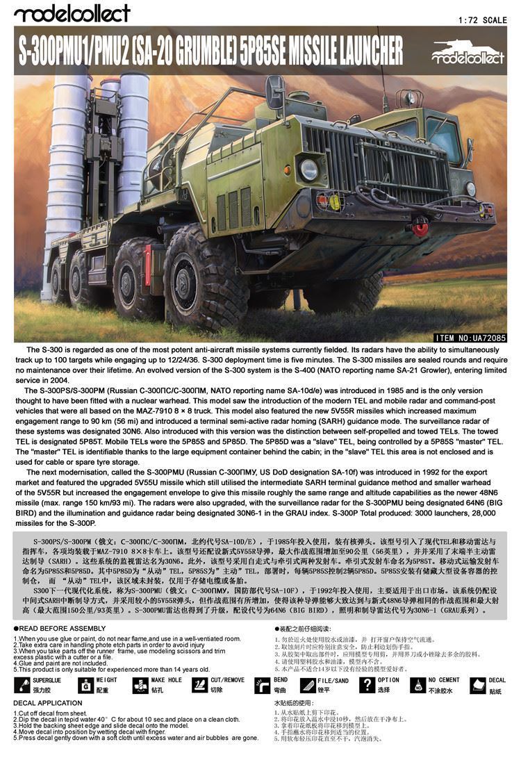 S-300 (kod NATO: SA-10 Grumble) to radziecki, a obecnie rosyjski system obrony przeciwlotniczej i przeciwbalistycznej klasy ziemia-powietrze. Prace projektowe nad tym systemem wystartowały najpewniej w 1967 r., ale produkcja wystartowała dopiero w 1975 r.,, trwając z przerwami zapewne do 2011 roku. W przypadku wczesnych wersji systemu S-300P pociskiem (efektorem) jest np. 5W55R, którego zasięg sięga 75 kilometrów, pułap maksymalny dochodzi do 25.000 metrów, a masa głowicy nie przekracza 133 kilogramów. S-300 to w swej istocie cała rodzina systemów obrony przeciwlotniczej i przeciwbalistycznej, która była rozwijana przez zakłady Ałmaz-Antiej, ale często w ścisłej współpracy z innymi podmiotami, np.: Zakłady Mechaniczne im. Kalinina lub Maryjską Fabryką Maszyn. Początkowo system był dedykowany do niszczenia celów powietrznych oraz taktycznych pocisków rakietowych przeciwnika, z czasem jednak zaczęto rozwijać w nim możliwości zwalczania pocisków balistycznych. System jest dedykowany przede wszystkim do zapewniania obrony przeciwlotniczej własnym miastom, centrom administracyjnym, bazom wojskowym czy lotniskom. W toku produkcji powstało wiele wersji rozwojowych tego systemu. Przykładowo wersja systemu S-300W (nazywana też Antiej-250 oraz Antiej -3000) ma za zadanie zwalczanie samolotów przeciwnika i jego taktycznych pocisków rakietowych (np.MGM-52 Lance czy Pershing II), a jej zasięg w najnowszych wersjach sięga 200 kilometrów. Z kolei wersja systemu S-300P jest dedykowana przede wszystkim niszczeniu samolotów i śmigłowców przeciwnika, przy zasięgu maksymalnym również rzędu 200 kilometrów. Co oprócz modelu będę potrzebować do jego sklejenia?