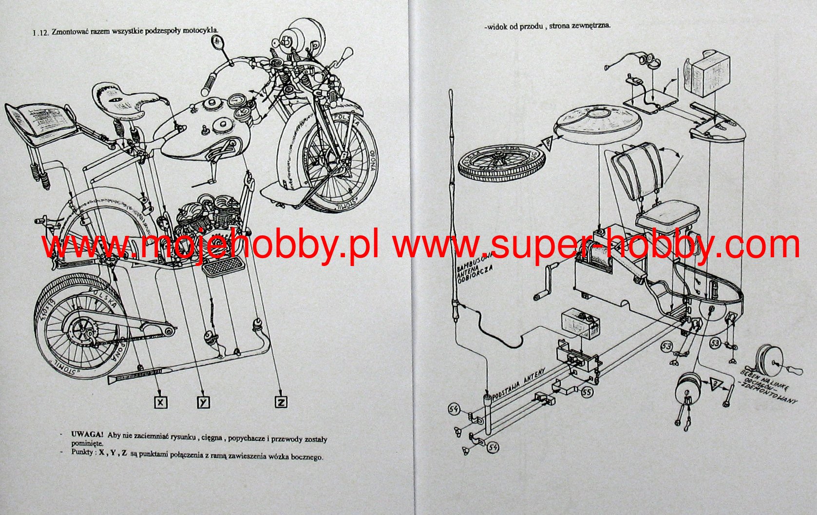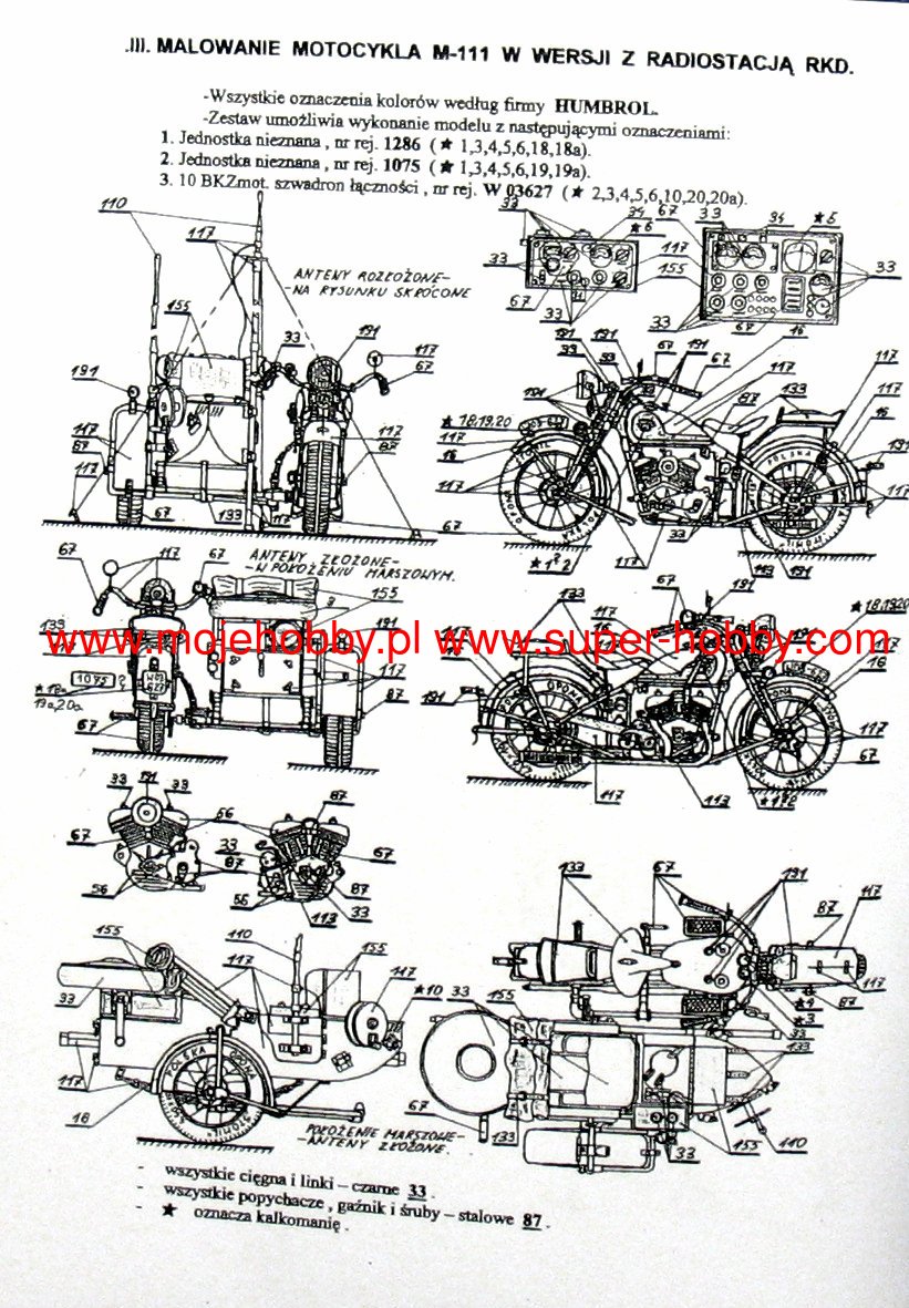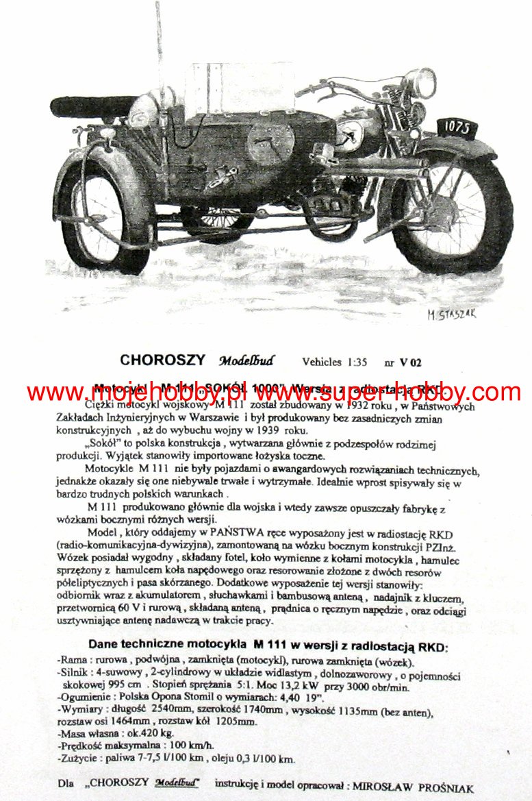 HEAVY MOTORCYCLE M111 SOKÓŁ(FALCON) WITH SIDE CAR AND RADIO-STATION choroszy modelbud 1/35