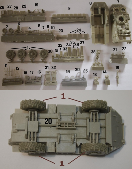 The VAB 4x4 is a modern French armored vehicle. The first prototypes were built in the early 1970s, and serial production began in 1974. To date, it has resulted in the creation of around 5,000 vehicles of this type. The drive is provided by a single motor Renault MDR o power of 255 hp. The armament depends on the version, but in the basic model it is a single 7.62 mm AA52 machine gun. VAB 4x4 was created in response to the demand from the French armed forces in the early 1970s for a new, basic amphibious armored personnel carrier. VAB provides the possibility of transporting up to 10 landing soldiers, is characterized by a high maximum speed (over 100 km / h) and good mobility. According to the assumptions, it can overcome water obstacles without much preparation. The armor is made of armor plates that provide protection against small-caliber weapons and artillery fragments. In the course of production, the VAB was created on a four- and six-wheeled chassis (4x4 or 6x6). These versions were in turn modernized. As a result, several specialized versions of the VAB were created, for example: VAB MILAN and VAB ERYX (versions with anti-tank guided missiles), VAB RATAC (observation version for artillery units) or VAB Gene (engineering version). Vehicles of this type have been sold to many countries, including: Brunei, Chad, Cyprus, Morocco and Kuwait. VAB transporters also took part in many armed conflicts, mainly in the Gulf War of 1990-1991 or during the intervention in Afghanistan.The MO-120-RT-61 is a French, trailed 120mm mortar from the post-war and the present day. The weapon is 301 cm long and 193 cm wide. Its weight in the marching position is 582 kilograms. The maximum range when firing classic high-explosive ammunition reaches 8.2 kilometers. MO-120-RT-61 was developed and put into production by the company Thomson-Brandt Armements to replace the MO-120 AM-50 mortar in French Army units in the 1960s. The weapon has a single pair of road wheels and rests on a triangular stop plate in the combat position. In the French army, the VAB 4x4 is most often used to tow this heavy mortar. The mortar can fire three basic types of missiles: PR-14 (classic high-explosive), PRPA (high-explosive shell with additional rocket propulsion of greater range) and illuminating ammunition. MO-120-RT-61 was used in combat, e.g. during the First Gulf War (1990-1991) or during operations in Afghanistan (from 2003). It was also exported to many countries, including Belgium, Brazil, Israel, Japan and Italy.