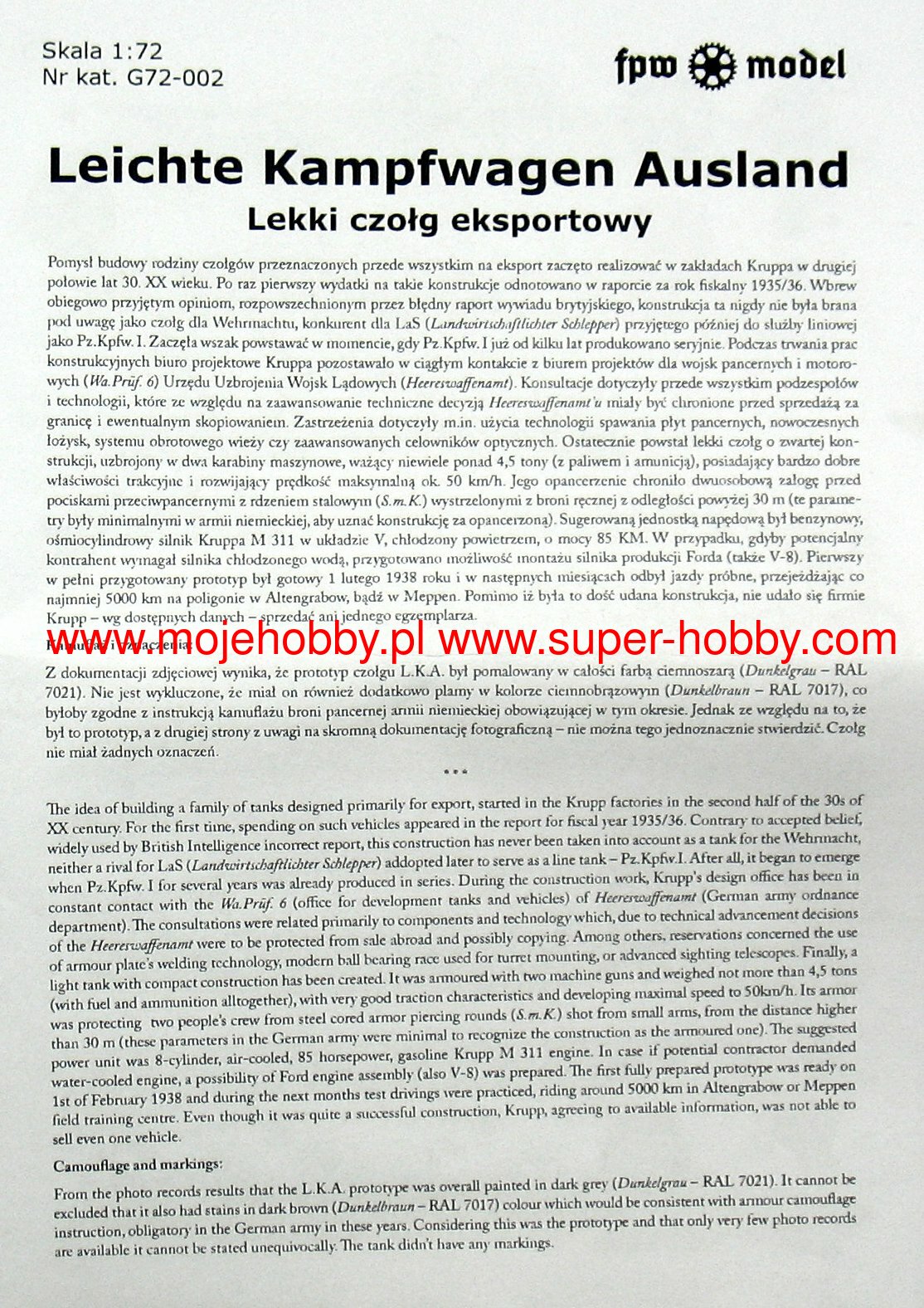 G72-002 LEICHTE KAMPFWAGEN AUSLAND 1 (L.K.A. 1) fpw model 1/72