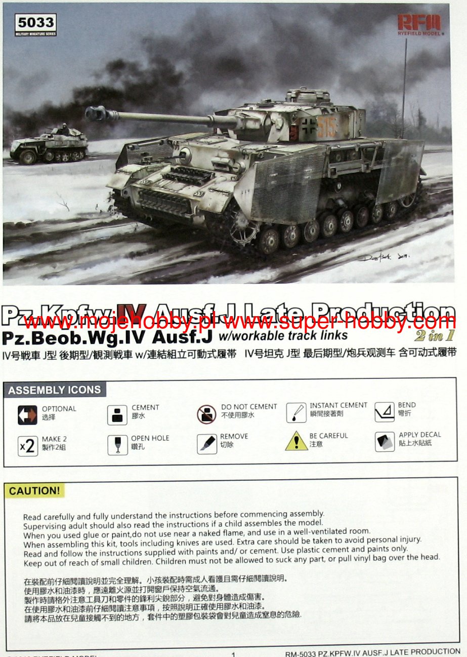 RM-5033 PZ.KPFW.IV AUSF.J LATE PRODUCTION /PZ.BEOB.WG.IV AUSF.J 2 IN 1 W/WORKABLE TRACK LINKS rye field model 1/35