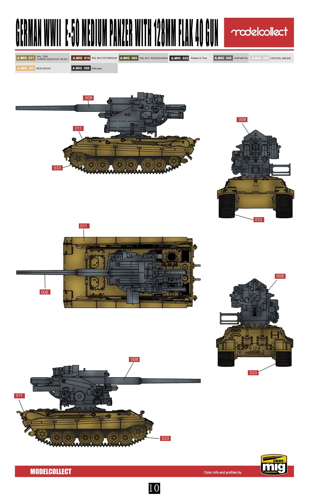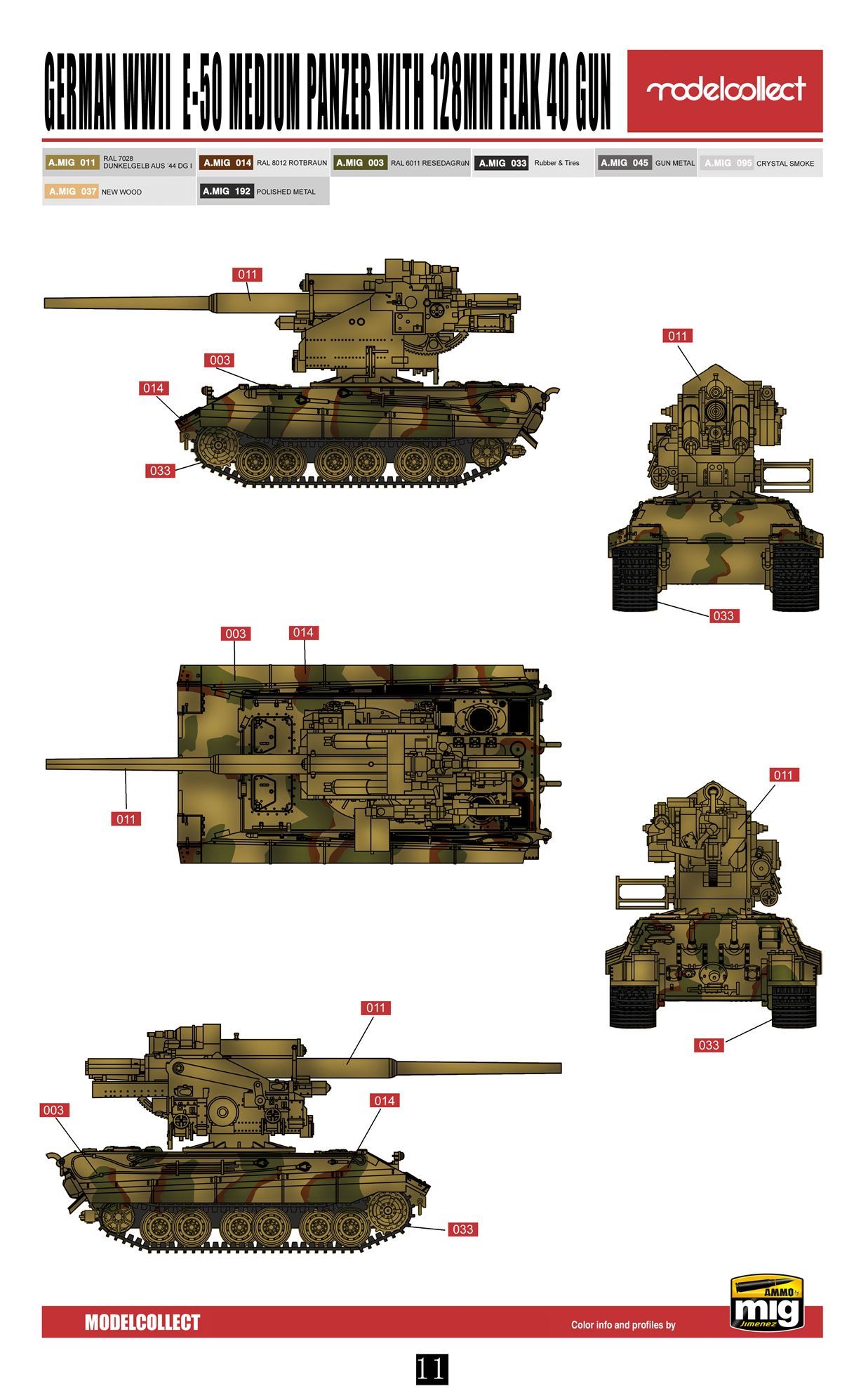 Flak 40 to niemieckie, ciężkie działo przeciwlotnicze kal. 128 mm z okresu II wojny światowej. Pierwsze prototypy działa powstały w 1937 roku, a w 1942 roku rozpoczęła się produkcja seryjna, kończąc się wytworzeniem ok. 600 dział tego typu. Maksymalna donośność w pionie wynosiła 14.800 m, a prędkość początkowa pocisku 880 m/s. Flak 40 powstała jako realizacja projektu firmy Rheinmetall, sięgającego korzeniami roku 1936, nowego ciężkiego działa przeciwlotniczego. Jako, że w latach 1937-1941 nie postrzegano nalotów bombowych na miasta niemieckie, jako wielkiego zagrożenia prace nad Flak 40 miały bardzo niski priorytet. Fakt ten uległ zmianie w 1942 roku, co doprowadziło do wdrożenia nowego działa do produkcji. Pierwotnie planowano stworzyć wersję mobilną Flak 40, ale szybko przestawiano się na produkcję jedynie wersji stacjonarnej, która była montowana na ufortyfikowanych stanowiskach albo na tzw. „Flakturm Zoo”. Podjęto także próbę produkcji zdwojonego działa Flak 40 (tzw. 12,8 cm Flakzwilling 40/2), ale produkcja zakończyła się na wytworzeniu ok. 40-50 sztuk tej broni.E-50 Standardpanzer był eksperymentalnym, niemieckim czołgiem podstawowym z okresu II wojny światowej, który nigdy nie wszedł do produkcji seryjnej. Jego uzbrojenie miała najpewniej stanowić armata KwK 43 L/71 kal. 88 mm oraz 1 lub 2 karabiny maszynowe MG34 albo MG42 kal. 7,92 mm. Prace projektowe nad czołgiem E-50 zostały zainicjowane w ramach programu Entwicklungsserie, czyli programu rozwoju niemieckiej broni pancernej który miał doprowadzić do powstania standaryzowanego projektu serii sześciu wozów bojowych o różnej masie, ale wykorzystujących jak najwięcej wspólnych podzespołów. Prace analityczne i koncepcyjne w ramach tego programu zainicjowano w połowie 1943 roku. Czołg E-50 w tym projekcie miał być podstawowym czołgiem armii niemieckiej, pełniąc uniwersalną rolę na polu walki, tzn. mając mobilność czołgu średniego, ale siłę ognia czołgu ciężkiego. Kadłub i podwozie E-50 miało w ogromnym stopniu bazować na tym stosowanym w Pz.Kpfw. VI Tiger II, natomiast wieża miała pochodzić od innego eksperymentalnego czołgu Panther Ausf. F tzw. Schmallturm. Docelowo E-50 miał zastąpić w linii czołgi Pz.Kpfw V Panther oraz Pz.Kpfw VI Tiger. Co oprócz modelu będę potrzebować do jego sklejenia?