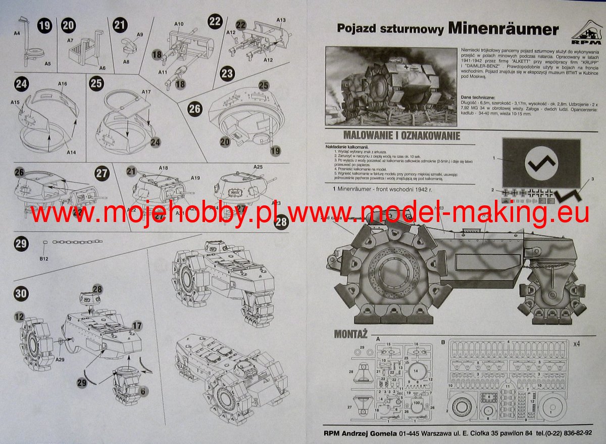 The VsKfz 617 Minenraumer was a German prototype self-propelled minesweep from World War II. The vehicle was powered by a single Maybach HL 120 engine with 300 hp. The prototype of the vehicle was created in 1942, but the car never entered mass production. The armament was two 7.92 mm MG34 machine guns placed in a rotating turret. The VsKfz 617 was developed by Alkett on behalf of the German armed forces, which wanted to acquire an attack vehicle for demining of heavily fortified areas. As a result, a prototype of a very unusual vehicle was created, which had 3 road wheels (two, large at the front and one, smaller at the rear of the vehicle) and armor up to 60 mm thick. However, the field tests showed many weaknesses of the new design - first of all, its very low maximum speed (not exceeding 20 km / h) and high silhouette, which was an ideal target for the enemy's anti-tank artillery. These shortcomings, as well as technical problems, meant that the VsKfz 617 never got beyond the protype stage. After the end of World War II, the only vehicle was intercepted by the Soviet army.