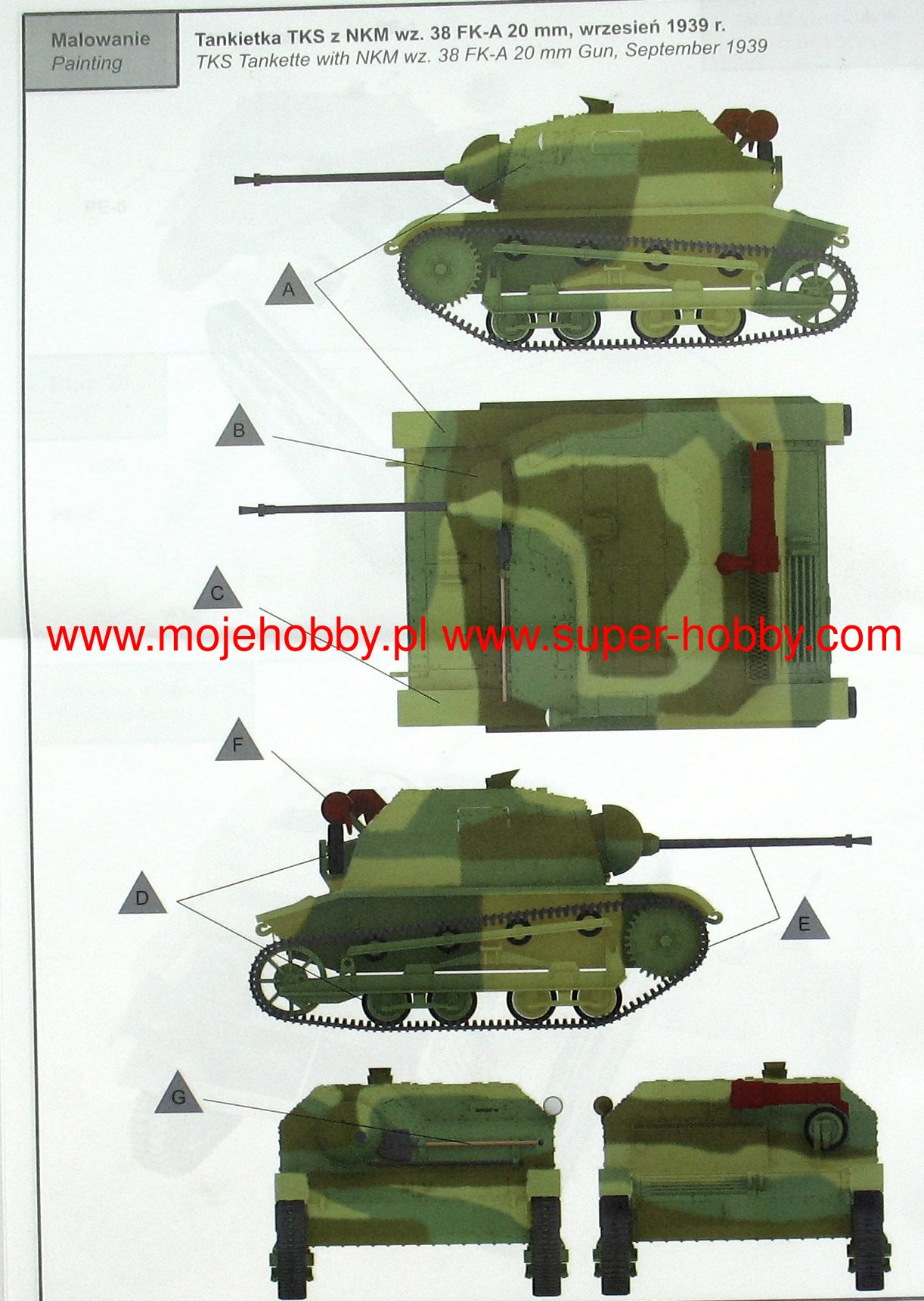 TKS is a Polish light tank (tankette) from the Second World War. The first prototypes of the vehicle were made in 1933, and serial production continued in the period 1934-1936, ending with the production of 280 copies of this vehicle. The TKS was powered by an engine Polish Fiat 122B with 46 HP. The vehicle was armed with one 7.92 mm Hotchkiss wz.25 machine gun or one of the heaviest wz. 38 FK-A with a caliber of 20 mm. TKS was created as a modernization and development of the TK-3 vehicles. Compared to the original, the front part of the fuselage has been changed, a new engine with a little more power has been added, the armor has been strengthened - especially in the front part of the car, the running gear and electrical system have been modernized. The changes led to a virtually completely new vehicle. However, the existing weaponry, i.e. a single machine gun, was retained, and it was planned to be replaced with a 20 mm caliber weapon. However, the outbreak of war in 1939 thwarted these plans and only about 20-30 TKS were modernized in this way. Due to the large number of TKS produced by Polish standards, they were the basic element of the Polish armored forces during the September campaign in 1939. TKS tankettes were also exported to Estonia, and the copies obtained in 1939 were used by both the German and Soviet armies.