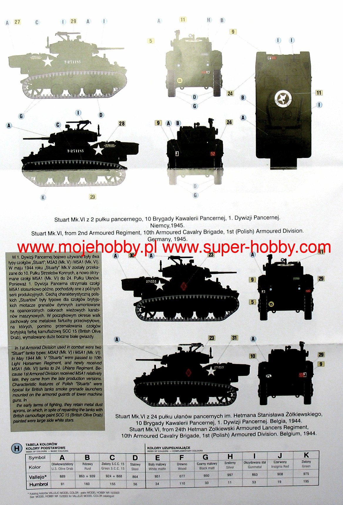 CZOŁG LEKKI 'STUART MK.VI' M5A1 (PÓŹNY) 1 DYWIZJA PANCERNA GEN. MACZKA, CHAMBOIS, 18 SIERPNIA 1944 mirage hobby 1/72