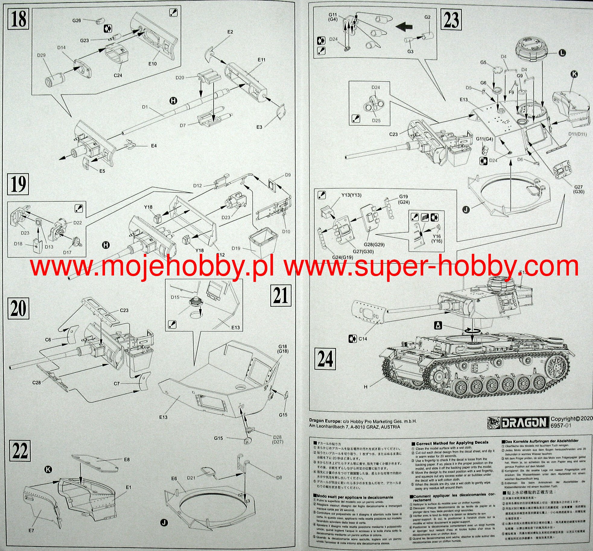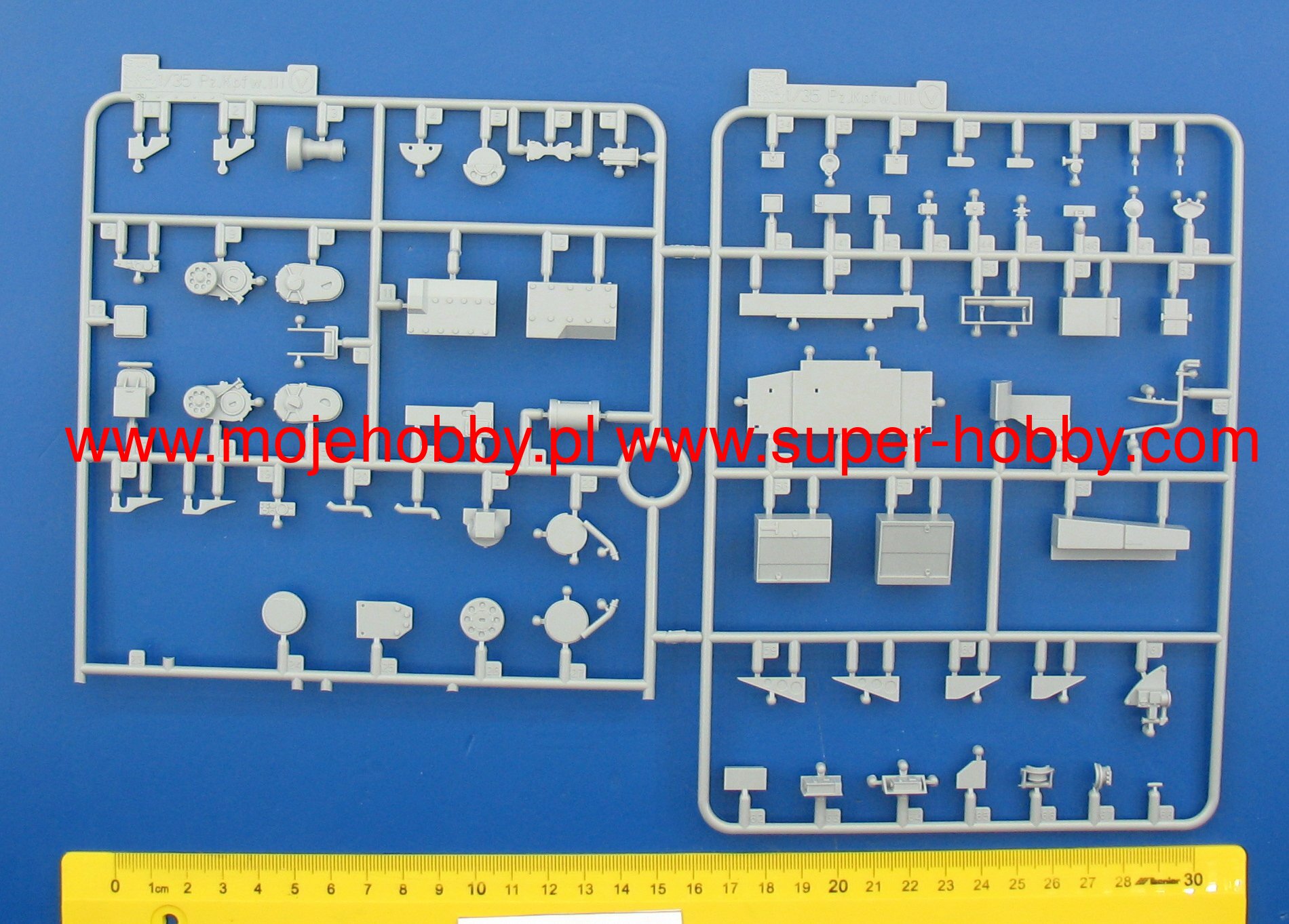 The PzKpfw III (Panzerkampfwagen III) was a German medium tank from the Second World War. The first prototypes of the vehicle were made in 1936, and serial production continued in the period 1937-1943, ending with the production of about 5,800 vehicles. The tank in the E version was powered by a single Maybach HL 120 TRM engine with a capacity of 300 HP. It was armed with one 37mm KwK 35/36 cannon and two 7.92mm MG 34 machine guns. placed in the tower. PzKpfw III was the "workhorse" of the German armored forces during World War II and one of the most intensively developed and modernized Wehrmacht tanks. Its serial production started in 1936, and many variants of this tank were created in its course. Chronologically, the first version was the A version, armed with a 37mm gun and a 230hp engine. However, already in December 1938, the E version was created, which was the first version produced in large series. It had a new, significantly more powerful engine, a completely new suspension and stronger armor in the front part of the turret and hull. Later (from December 1940) it was also armed with a more powerful 50mm cannon. In March 1940, the G version began to be produced, in which the rear hull and turret armor was reinforced. Soon after, in October 1940, the production of the H version started, which from the very beginning was armed with the 50mm KwK 38 L / 42 gun and had reinforced frontal armor. One of the most produced was the J version, which had armor up to 50 mm thick (later reinforced with aplique plates), and after the experience gained from the clashes with the T-34 and KW-1 vehicles - it was intensively rearmed for the KwK 39 L / 60 cannon. cal. 50 mm. The last development version was the N version, which was to be a support tank for armored grenadiers and was armed with a 75mm KwK 37 L / 24 short-barreled cannon. Numerous other vehicles were built on the chassis of the PzKpfw III, such as the StuG III assault gun. PzKpfw III tanks were used on almost all fronts of World War II - from the September campaign in 1939, through the campaign in France in 1940, operations Barbarossa and Typhoon in 1941, the Battle of Kursk in 1943, to the last operations of the German army against The USSR and the Western Allies in 1944-1945.