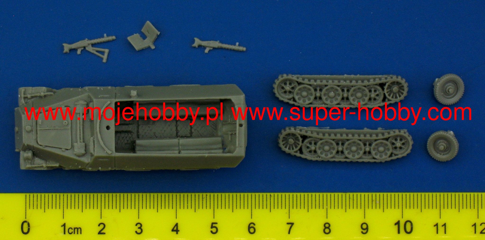 Sd.Kfz 251 was a German, medium, half-track armored transport from the Second World War. The first prototypes of the vehicle were made in 1935, and serial production continued in 1939-1945, ending with the production of about 14,500 units. The Sd.Kfz 251 was powered by a six-cylinder engine Maybach HL 42 TURKM with 100 hp . Sd.Kfz 251 was developed as a new, basic half-tracked transporter of the German armed forces. Its design was based on the Sd.Kfz.11 heavy tractor, with several elements changed in the adapted chassis: a new fuel tank was added, the location of the steering wheel, and the exhaust system was redesigned. In the course of serial production, four basic versions of the Sd.Kfz 251 (Ausf. A, B, C and D) were created, however, in terms of details related to the production process (especially the C version) and a slightly different arrangement of elements inside the fuselage. During World War II, more than 20 variants and versions of the Sd.Kfz 251 were created. The chronological first was the Sd.Kfz 251/1, which was the basic version, armed with two MG34 or MG42 machine guns and capable of carrying up to 10 landing troops. In 1941, a version of the Sd.Kfz 251/2 was developed, armed with an 80 mm mortar. There was also a version of the Sd.Kfz 251/3, which was a communication and radio communication vehicle with various sets of radio stations and antennas. In 1942, the Sd.Kfz 251/9 Stummel variant was developed, armed with a 75mm StuK 37 short-barrel gun. More interesting versions were the Sd.Kfz 251/16 with two flamethrowers or the Sd.Kfz 251/20 UHU equipped with an infrared radiation emitter and intended for targeting at night. Cars Sd.Kfz 251 of all versions served primarily in armored divisions and armored grenadiers on virtually all fronts of World War II: from the September campaign (1939), through the campaign in France (1940), fighting in the Balkans and North Africa (1941-1943) after fights on the Eastern (1941-1945) and Western (1944-1945) fronts.