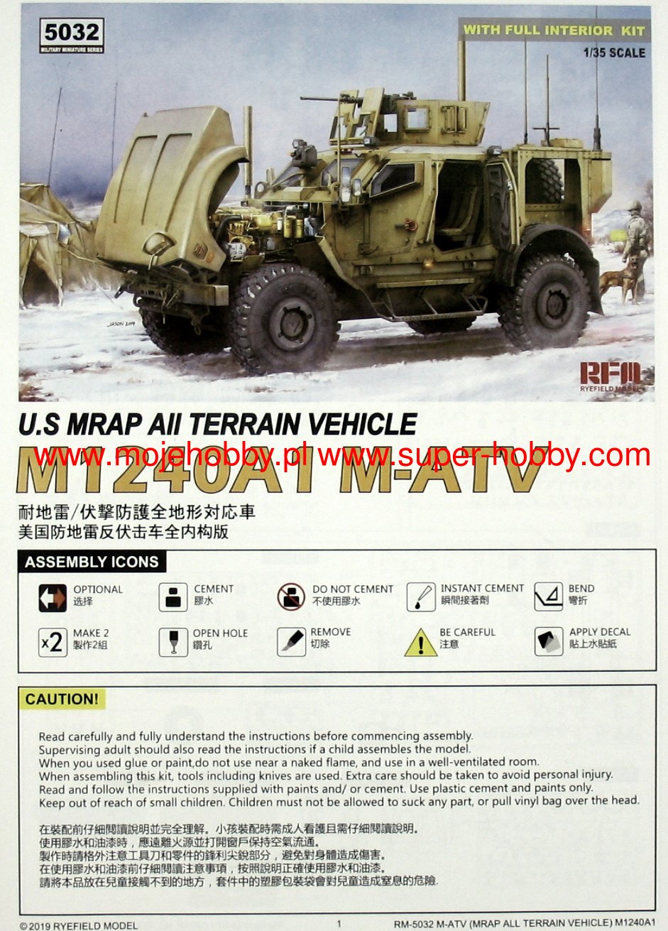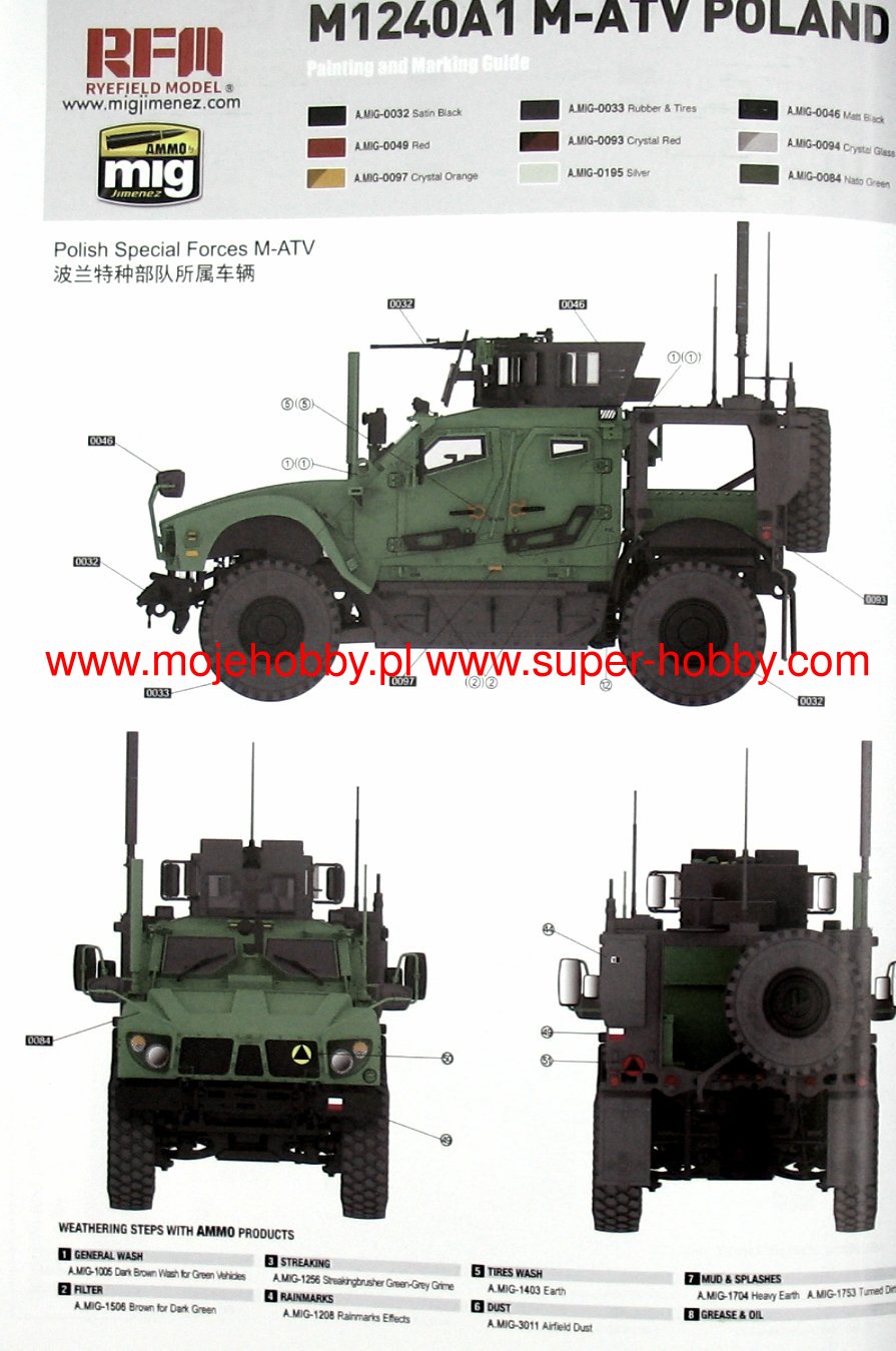 M-ATV MRAP is a modern American wheeled armored car. The vehicle is powered by a single C diesel engine aterpillar C7 with 370 hp. The vehicle can be armed with various models of weapons, including: a 7.62 mm M240 machine gun, a 12.7 mm Browning M2 machine gun or a 40 mm Mk.19 grenade launcher. The M-ATV was developed by the Oshkosh Corporation for the 2008 US Armed Forces, which were looking for a new light all-terrain vehicle for their infantry units operating in Afghanistan. The M-ATV replaced the M1113 HMMWV vehicles in the line. The new car was developed with the highest possible mobility in mind and providing the crew with a high level of safety against the so-called fugasami. Finally, the M-ATV was developed on a modified MTVR truck chassis and is able to withstand a mine explosion or the so-called grout with a capacity of 10 kg. TNT. Its design was based on the experience gained from the operation of vehicles such as the Cougar. The vehicle is also characterized by good performance, especially the maximum speed, and a large operating range. Several variants of this vehicle were created in the course of production, for example the M-ATV Command (command car with extensive electronics and communication equipment), M-ATV Utility (transport vehicle) or M-ATV Special Process (a vehicle adapted to the needs of special forces). M-ATVs have been or are used by the armed forces of several countries, including Croatia, Portugal, Poland and Saudi Arabia.