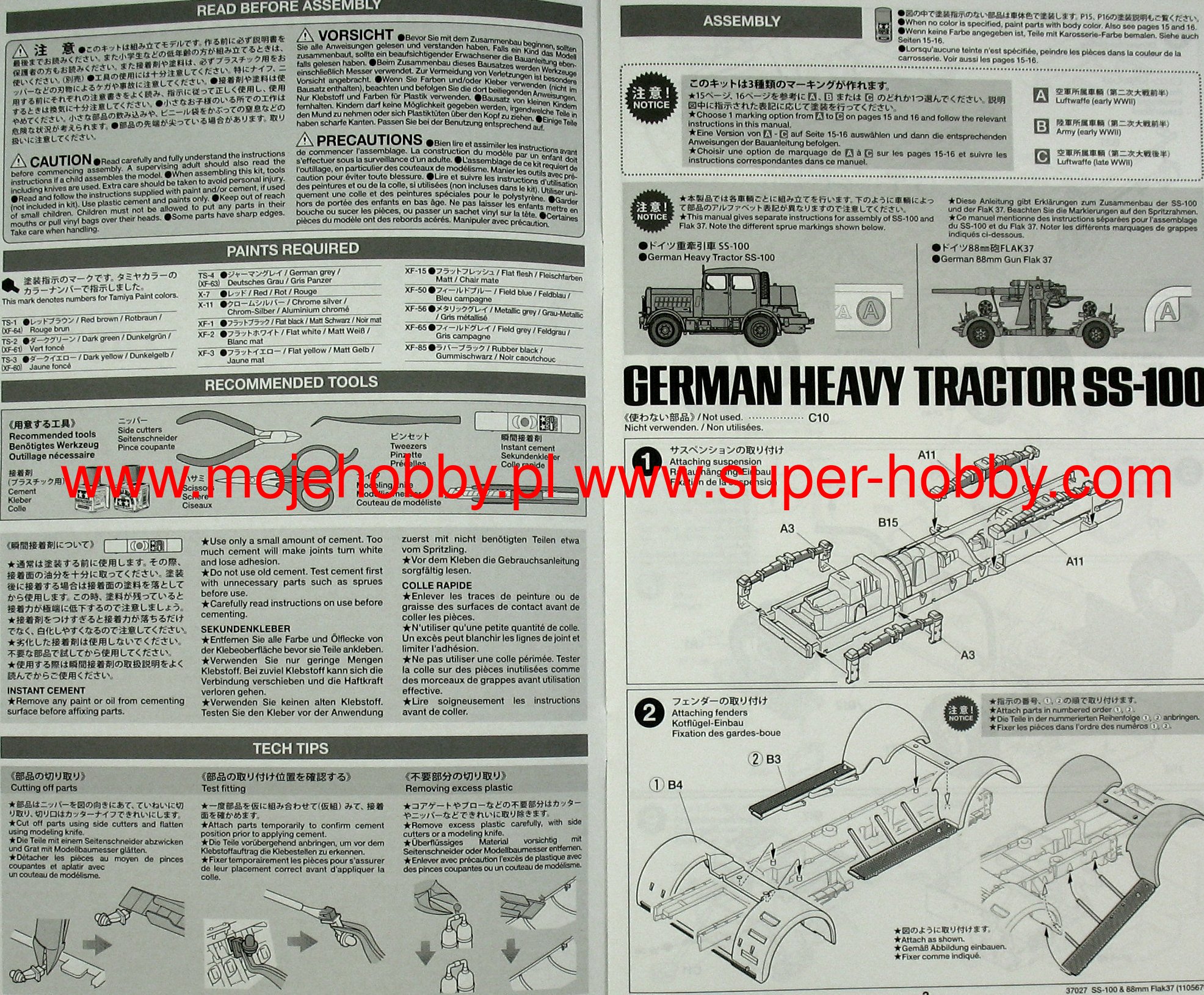 GERMAN HEAVY TRACTOR SS-100 & 88MM GUN FLAK37 SET tamiya 1/48