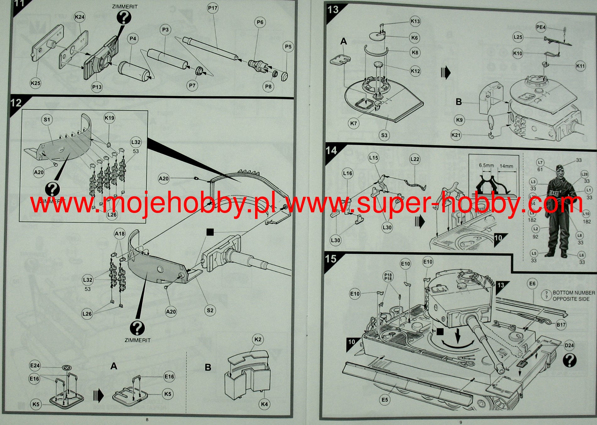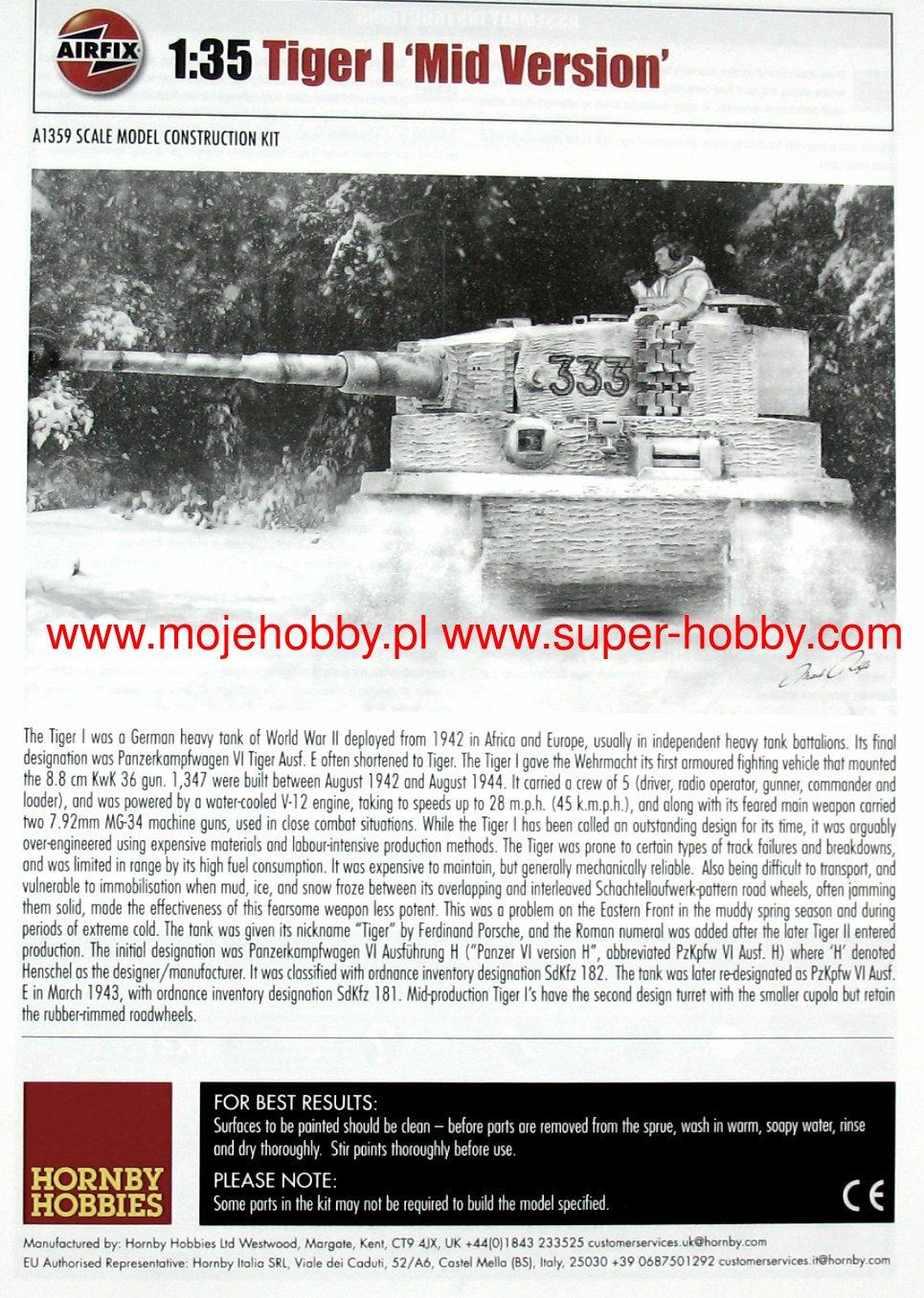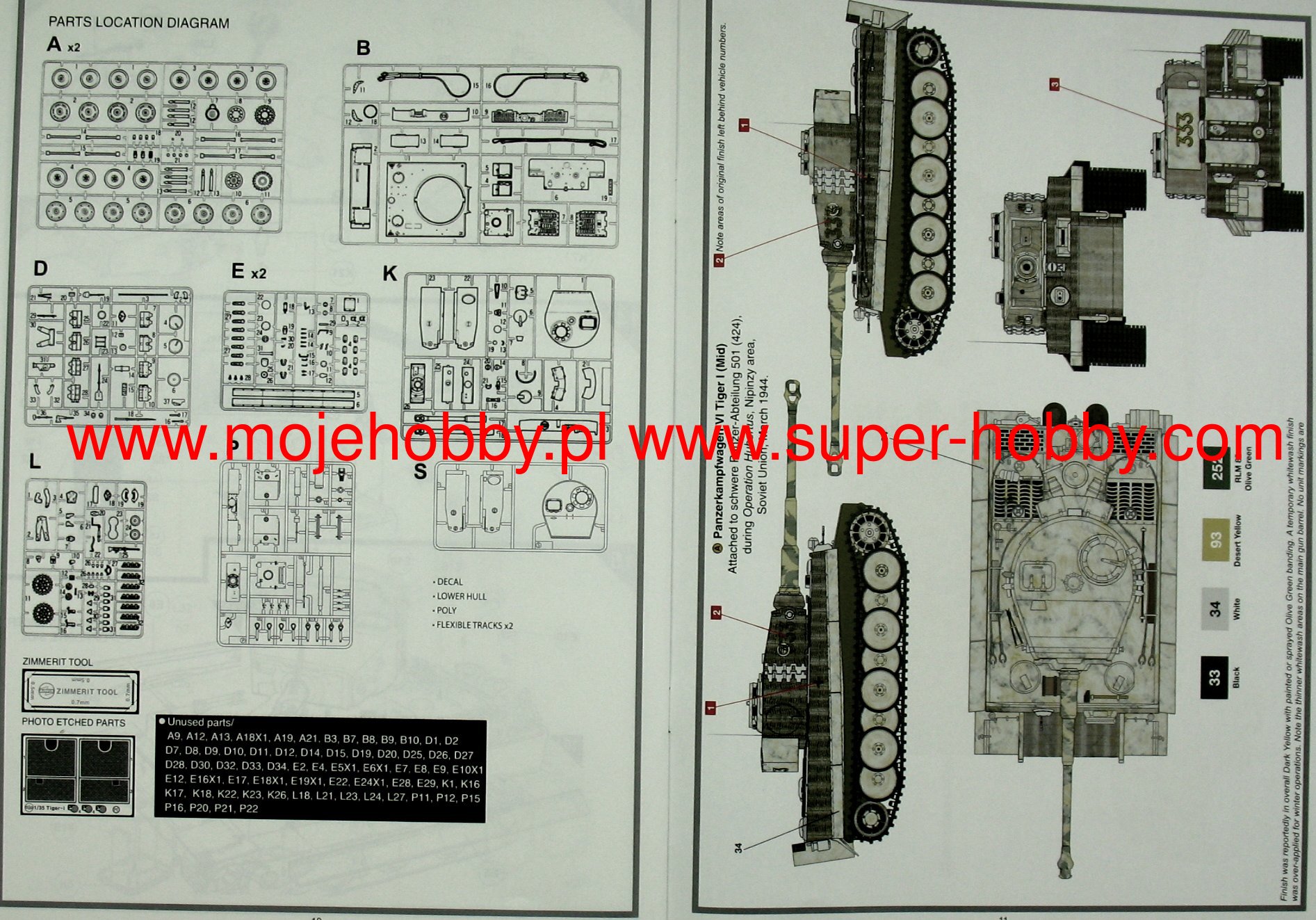 Pz.Kpfw VI (Sd.Kfz.181) Tiger немецкий тяжелый танк времен Второй мировой войны, одна из самых известных боевых машин того времени. Идея создания тяжелого танка у командования немецких панцерваффе возникла еще с начала войны, но первые попытки в виде многовекового танка Neubaufahrzeuge оказались безуспешными. В 1939 и 1940 годах они велись малоэффективно, но после столкновения на Восточном фронте с Т-34 и KW-1 работы над новым тяжелым танком ускорились. 20 апреля 1942 года прототип нового танка, получивший обозначение VK 4501(H), прошел полевые испытания в присутствии Адольфа Гитлера и вскоре после этого был запущен в серийное производство. Первые серийные версии получили обозначение Pz.Kpfw VI Ausf.H1 (позже Ausf.E). В ходе производства, в 1942-1945 годах, танк систематически дорабатывался, например, добавлением противопылевых фильтров Файфеля, иным размещением фар, модернизацией оптического оборудования, изменениями командирской башенки и т.д. Предусматривался привод 12-цилиндровым карбюраторным двигателем Maybach HL230 P45 мощностью 700 л.с. Танк Pz.Kpfw VI, хотя и не имел такой обводной лобовой части корпуса, как Т-34 или Pantera, был тяжелобронированной машиной (лобовая броня до 120мм), вооруженной весьма эффективной 88-мм пушкой KwK 36 L/56 , заслуживший репутацию самого эффективного танка Второй мировой войны. Это была машина намного лучше союзнических М4 или Черчиллей и советских Т-34/76. Также он легко мог бороться с ИС-2 или М-26, превосходя их по эффективности основного вооружения. С другой стороны, у Pz.Kpfw VI были и недостатки прежде всего, он был чрезвычайно трудоемок в производстве и имел очень сложную ходовую часть. В более поздний период войны качество брони Тигра также ухудшилось, что стало следствием отсутствия доступа экономики Германии к месторождениям молибдена. Несмотря на эти недостатки, Тигр на полях сражений показал себя очень эффективным оружием. Он успешно воевал в Тунисе, на Курской дуге, в Нормандии и на Восточном фронте. Технические данные: длина (со стволом): 8,45м, ширина: 3,7м, высота: 2,93м, мощность двигателя: 700км, вес: 56,9т, дальность (по дороге): 100км, максимальная скорость (по дороге) ) Скорость: 38 км/ч, вооружение: 1 88-мм пушка KwK 36 L/56, 3 7,92-мм пулемета MG 34.