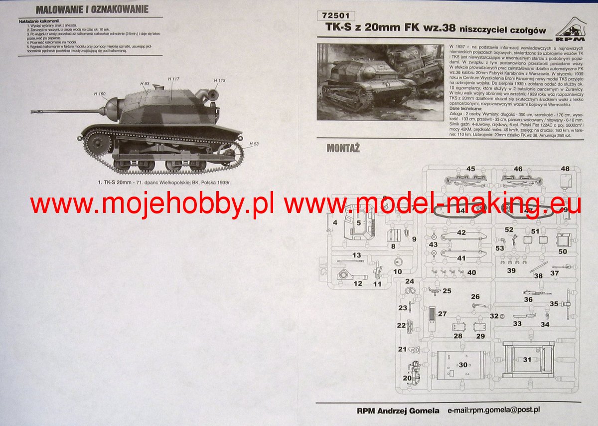 NISZCZYCIEL CZOŁGÓW TK-S Z DZIAŁKIEM 20MM FK WZ.38 (WLKP.BRYGADA KAWALERII, POLSKA 1939) rpm 1/72