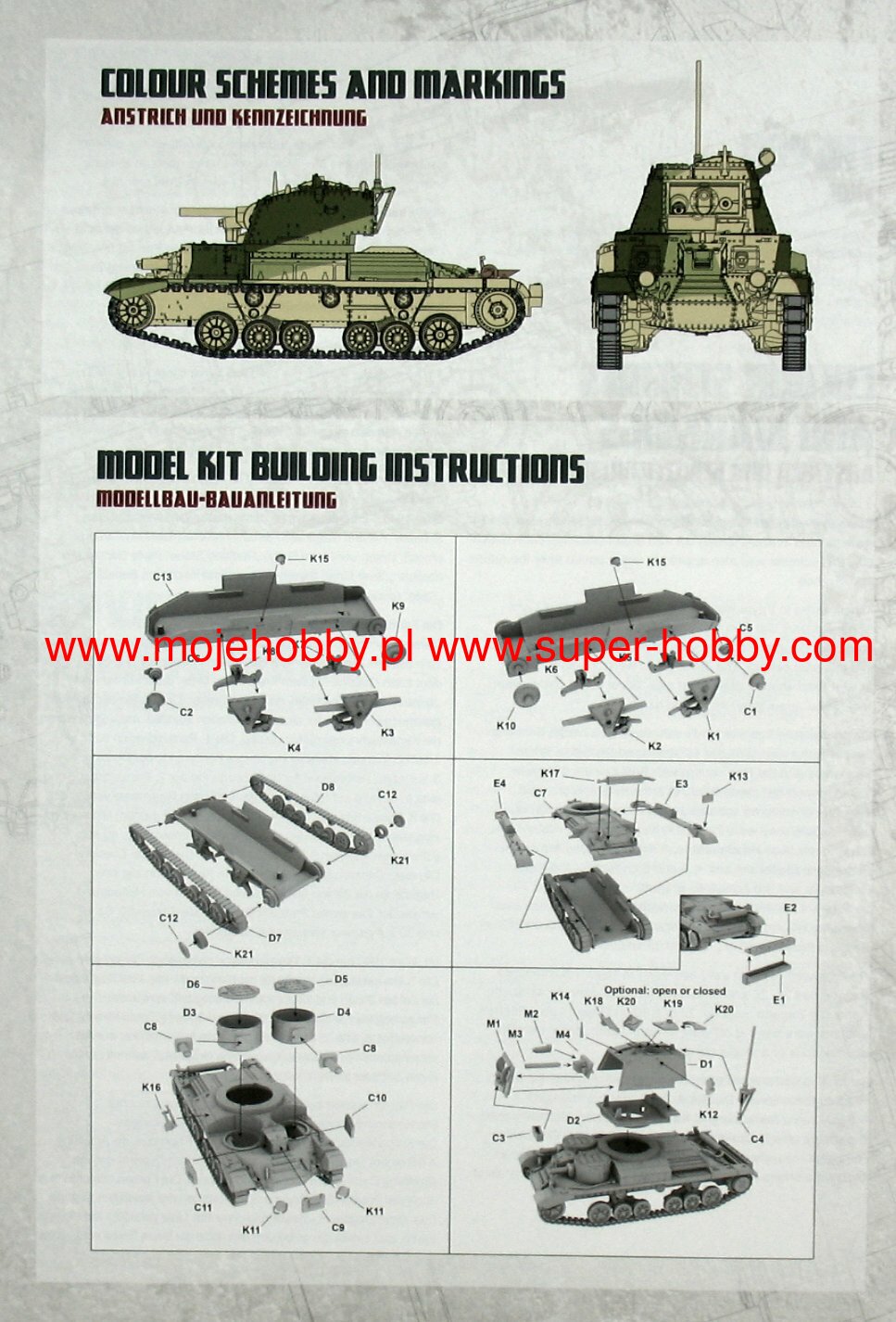 Cruiser Tank A9 (also known as: The Cruiser Tank Mark I) was a British high speed / pursuit tank from the interwar period and World War II. The first prototypes of the vehicle were built in 1934, and serial production continued in the years 1934-1941, ending with the production of about 125 copies. The wagon was 5.8 meters long, 2.5 meters wide and 2.65 meters high. The tank was powered by an engine AEC A179 with 150 hp . The basic armament of the vehicle consisted of a single 40mm 2-pounder cannon and three 7.7mm machine guns. The Cruiser Tank A9 was developed as the successor to the Vickers Medium Mark II. Compared to its predecessor, the new car got a completely different suspension, new main armament and a different power unit. A lot of emphasis was also placed on its maneuverability, which in turn had a disastrous effect on the thickness of its armor, which did not exceed 14 mm! Although the Cruiser Tank A9 was well armed (by the standards of the mid-1930s) and had a modern suspension, it turned out to be a not very successful or modern design. Despite this, the car was used in combat during the fighting in France in 1940, during the fighting in Greece in 1941 and in the initial period of the campaign in North Africa (1940-1943).
