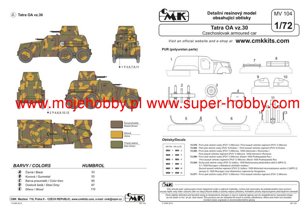 Tatra OA vz.30 was a Czechoslovakian armored car from the interwar period. The first prototypes of the vehicle were created in the early 1930s, and serial production continued in 1933-1934, ending with the production of 51 vehicles. The car was powered by a single engine Tatra 71 T-52 with a power of 32 HP. The armament was two machine guns ZB vz.26 cal. 7.92 mm. Armored car Tatra OA vz.30 was created as a successor to the OA vz.27 vehicle. In the period 1934-1939 it was the basic vehicle of this type of the Czechoslovak army. It was built on the basis of the Tatra T-72 truck chassis. Tatra OA vz.30 featured a three-axle undercarriage with a hull protected by armor plates up to 5.5 mm thick. The armament was placed in a rotating turret at the top of the fuselage and in the front - at the driver's seat. After the collapse of Czechoslovakia, vehicles of this type were used by Slovakia, Romania, Hungary and - perhaps - Germany. As part of the armed forces of Slovakia, the Tatra OA vz.30 vehicles took a marginal part in the September campaign in 1939 and in the first months of Operation Barbarossa in 1941.