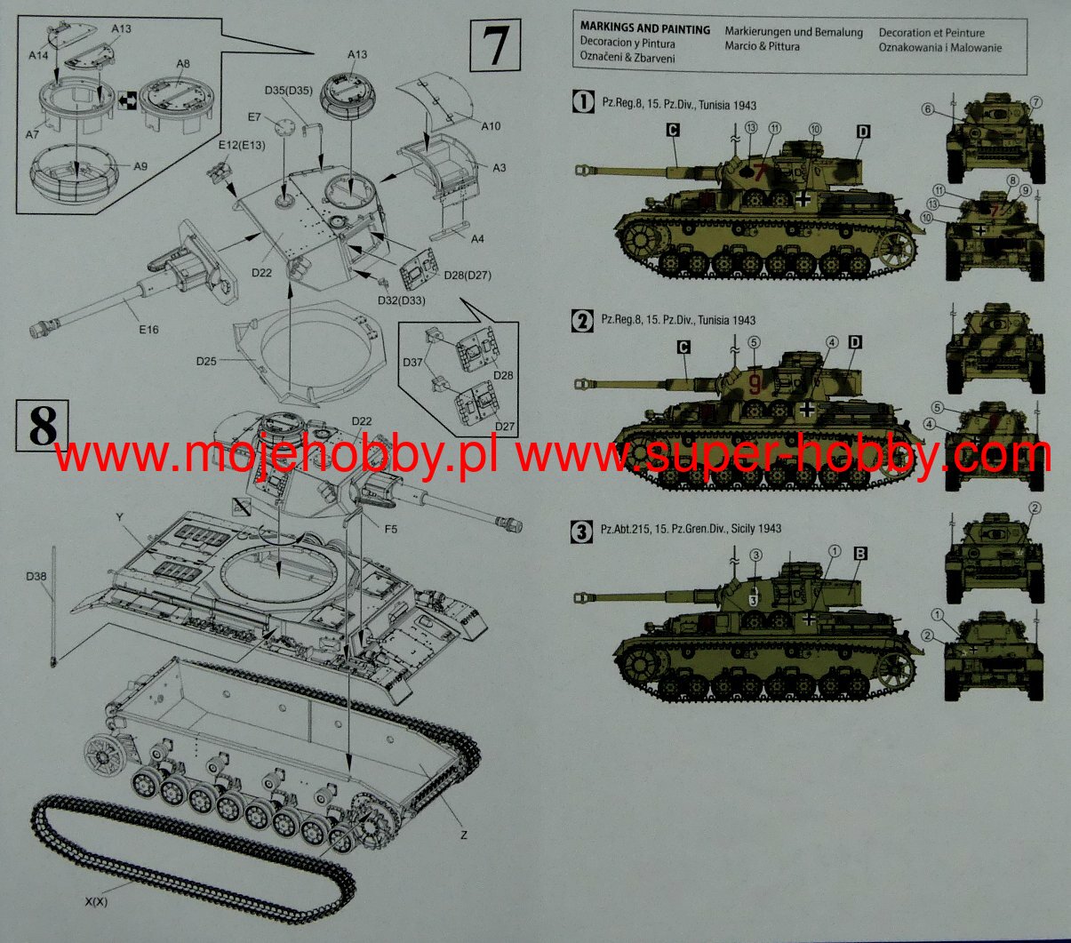 PzKpfw IV (Panzerkampfwagen IV) was a German medium tank from the Second World War. The first prototypes of the vehicle were created in 1936, and serial production continued in the period 1938-1945, ending with the production of about 8,600 vehicles. The D version of the tank was powered by a single Maybach HL 120 TRM engine with a capacity of 300 HP. It was armed with 1 75mm KwK 37 L / 24 gun and 2 7.92mm MG 34 machine guns. The PzKpfw IV was created as a result of a competition announced at the end of 1934 by the German Armaments Department for a medium tank weighing up to 18 tons and armed with a 75 mm gun. The competition was won by the Krupp company, whose vehicle was put into mass production - as it turned out, it was a vehicle that can be safely called the "workhorse" of German armored forces during World War II and one of the most intensively developed and modernized Wehrmacht tanks. Numerous variants of the PzKpfw IV were created in the course of production. Chronologically, the first was the A version, armed with a 75mm short-barreled gun and a 230hp engine. However, versions B and C appeared quickly, in which several significant changes were made: first of all, more powerful engines (265 HP in version B and Maybach HL 120 TRM with 300 HP in C version - which were installed in PzKpfw IV until 1945 year), and the armor of the entire car was improved. The F1 and F2 versions turned out to be a real revolution, in which the frontal armor was increased to 60 mm, and the main armament was changed to the great, long-barreled 75mm KwK 40 L / 43 cannon, which in 1942 and 1943 allowed them to fight any Allied or soviet. The most frequently produced versions of the PzKpfw IV were the G, H and J versions, which were very similar to the F1 and F2 versions. The main armament has not changed significantly (it was still the KwK 40 cannon), as well as the engine and chassis. On the other hand, the armor was slightly strengthened, and from the beginning of 1943 armored screens (Schurzen) were installed on them. Numerous other vehicles were built on the chassis of the PzKpfw IV, such as the StuG IV assault gun, the Nashorn tank destroyer or the Wirbelwind self-propelled anti-aircraft gun. PzKpfw IV tanks were used on almost all fronts of World War II - from the September campaign in 1939, through the campaign in France in 1940, the Barbarossa and Typhoon operations in 1941, the Battle of Kursk in 1943, to the last operations of the German army against The USSR and the Western Allies in 1944-1945.
